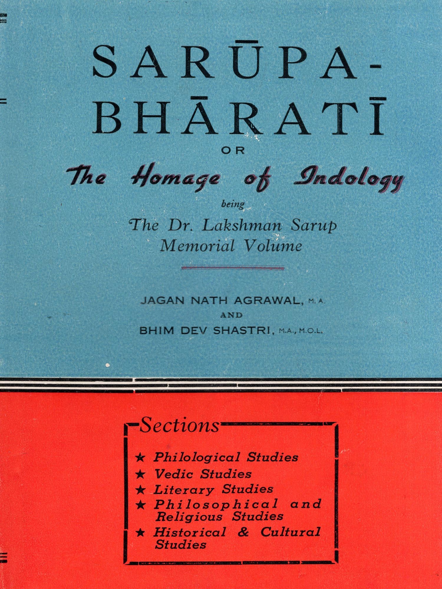 Sarupa-Bharati or the Homage of Indology Being the Dr. Lakshman Sarup Memorial Volume: Nirukta and Anirukta in Vedic and Some Criticism of the Traditional Concept of Ajnana (An Old and Rare Book)