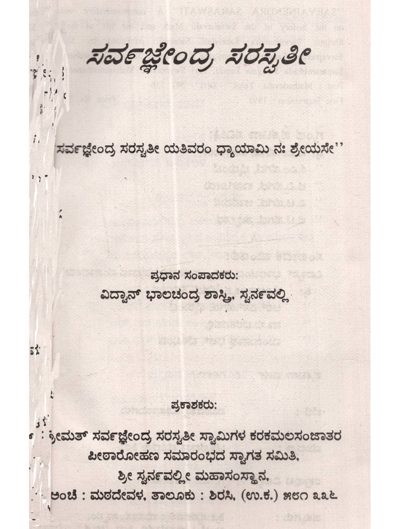 ಶ್ರೀ ಸರಸ್ವತೀ ಸಹಸ್ರನಾಮ: Sri Saraswati Sahasranama (Kannada)