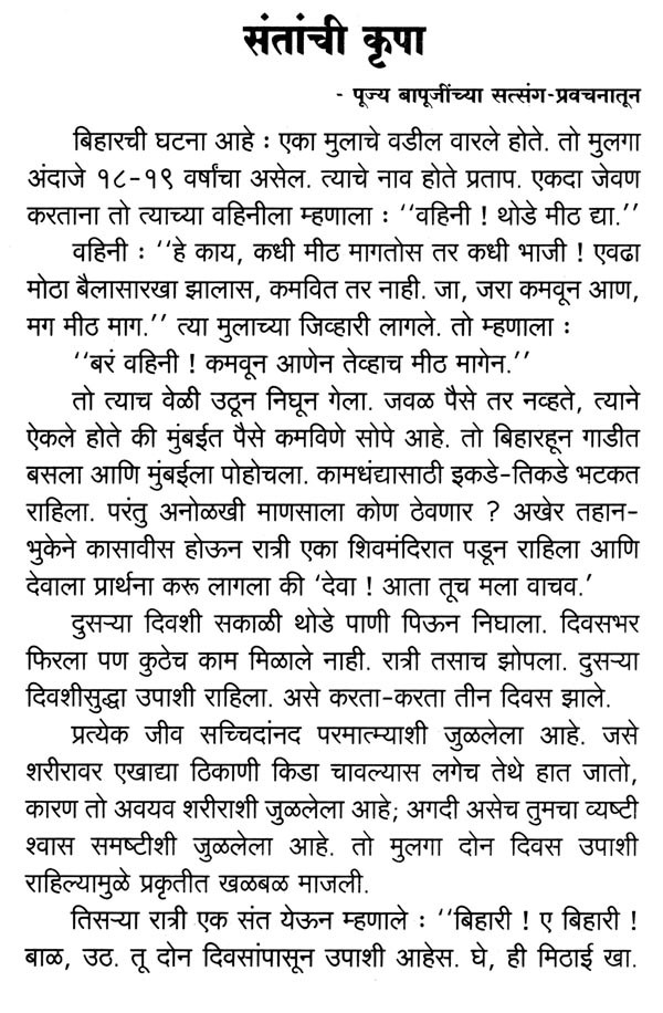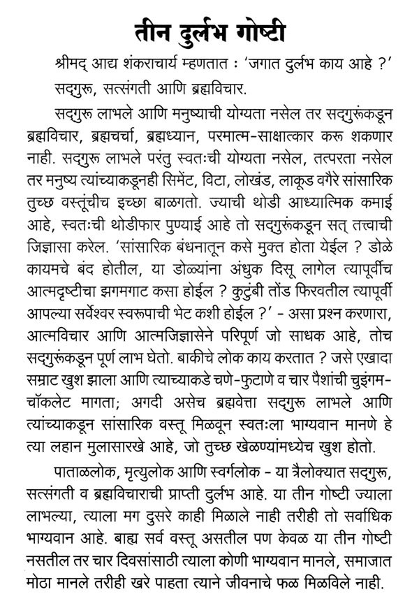 Jivanache Ame Konate Kṣetra Ahe. Jethe Matsagachi Matmaga Jivanachi Atyavasyaka Magana Avasyakata Nahi? Ahe Karana Khara Sakha Jivanaci Magani Ahe Anite Satyaganaca Miḷa Sakata. Pujya Santa Sri Asaramaji Bapunchi Satsang-Pravachane.
