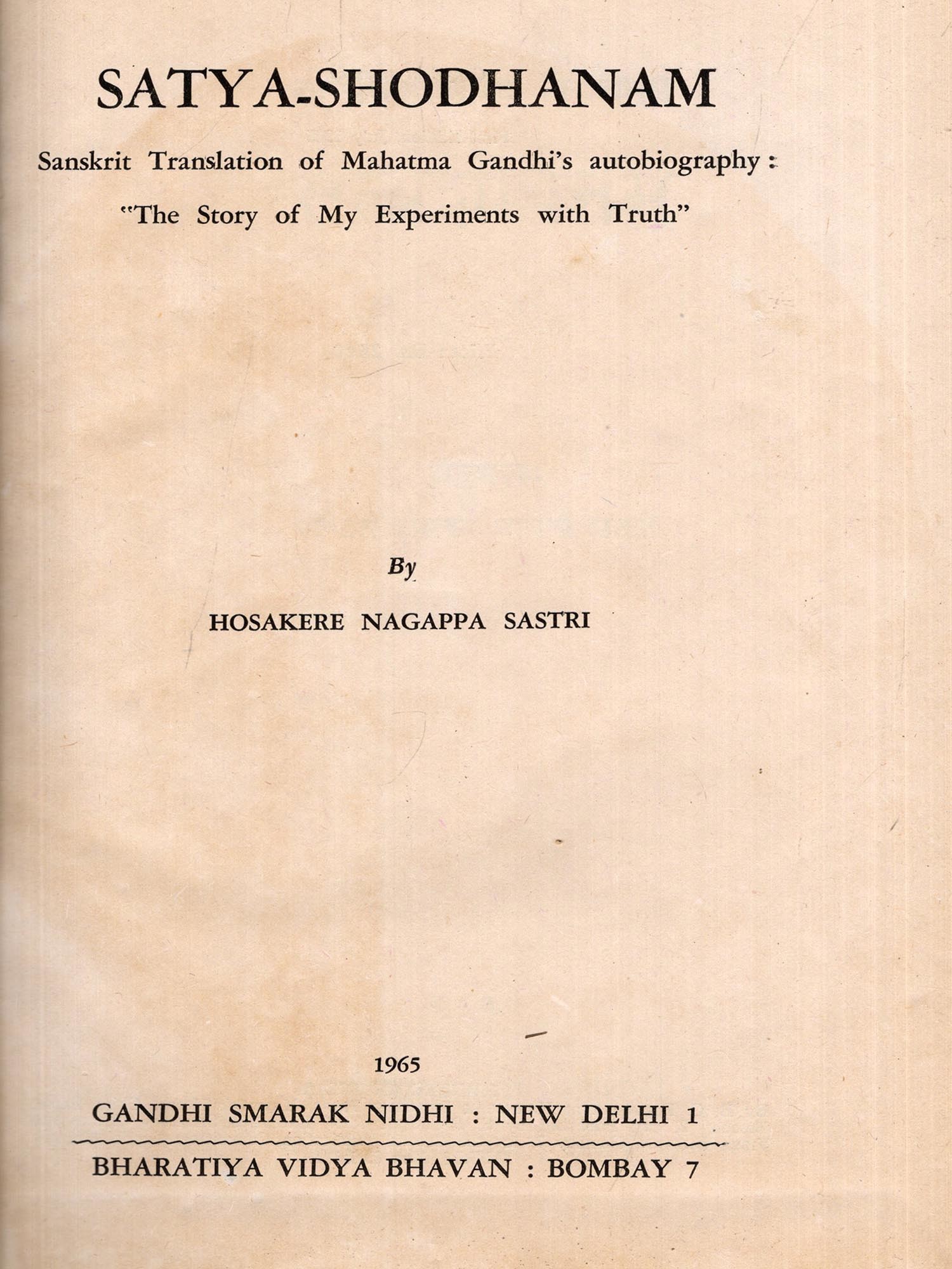 सत्यशोधनम्- Satya-Shodhanam: Sanskrit Translation of Mahatma Gandhi's Autobiography: ‘The Story of My Experiments with Truth’ (An Old and Rare Book)