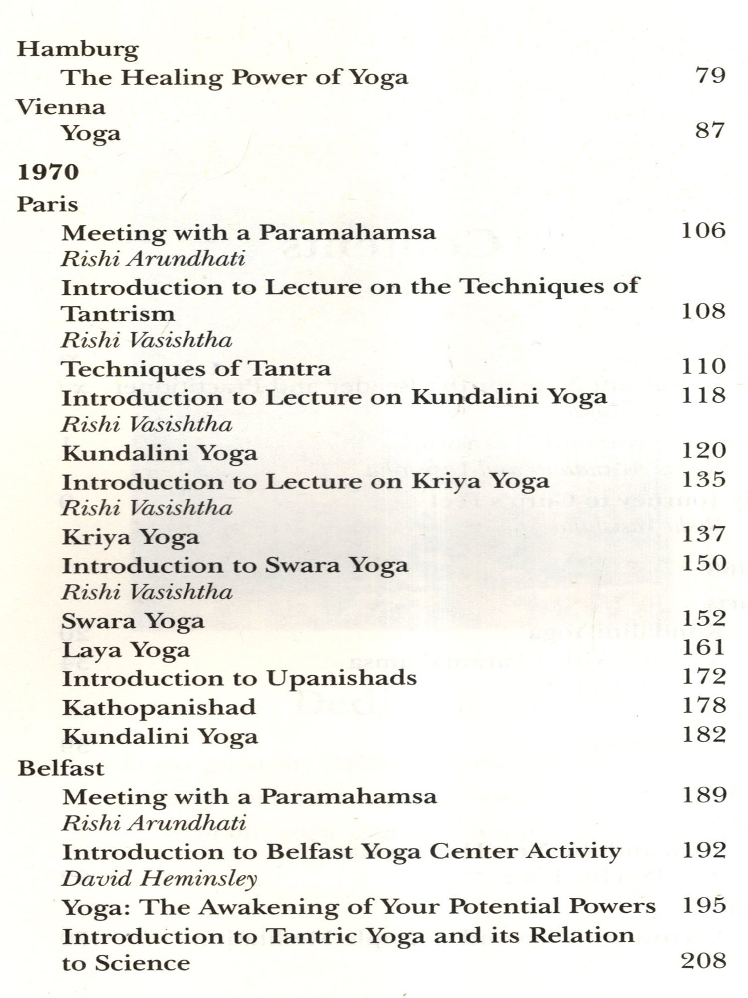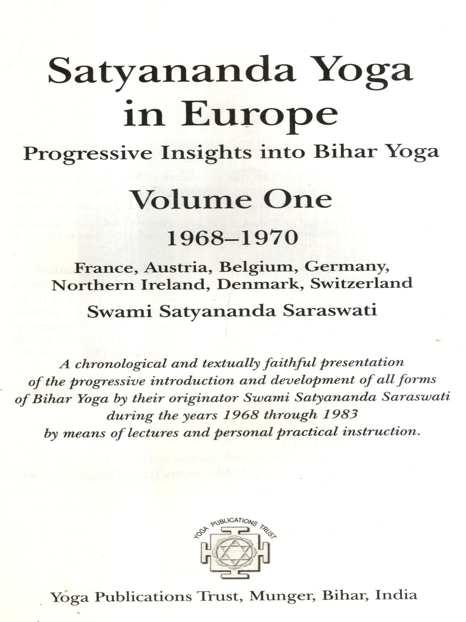 Satyananda Yoga in Europe Volume One covers the first three tours of 1968, 1969 and 1970 when Sri Swami Satyananda visited Austria, Belgium, Denmark, France, Northern Ireland and Switzerland. The focus of his teaching was tantra, kundalini and kriya yoga.