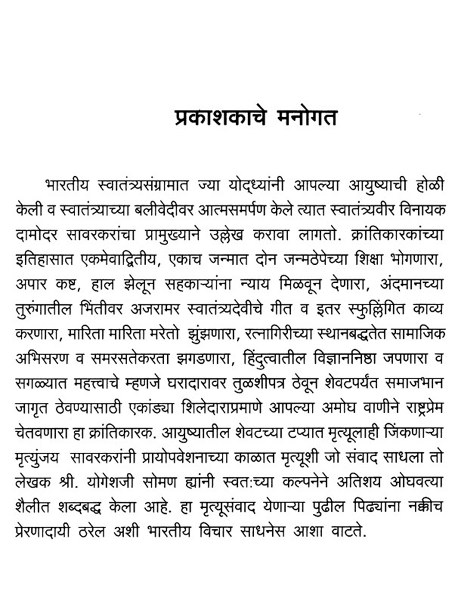 अवध्य मी अजिंक्य मी- Avadhya Mi Ajinkya Mi: (A Novel on the Last Period of Savarkar's Life)