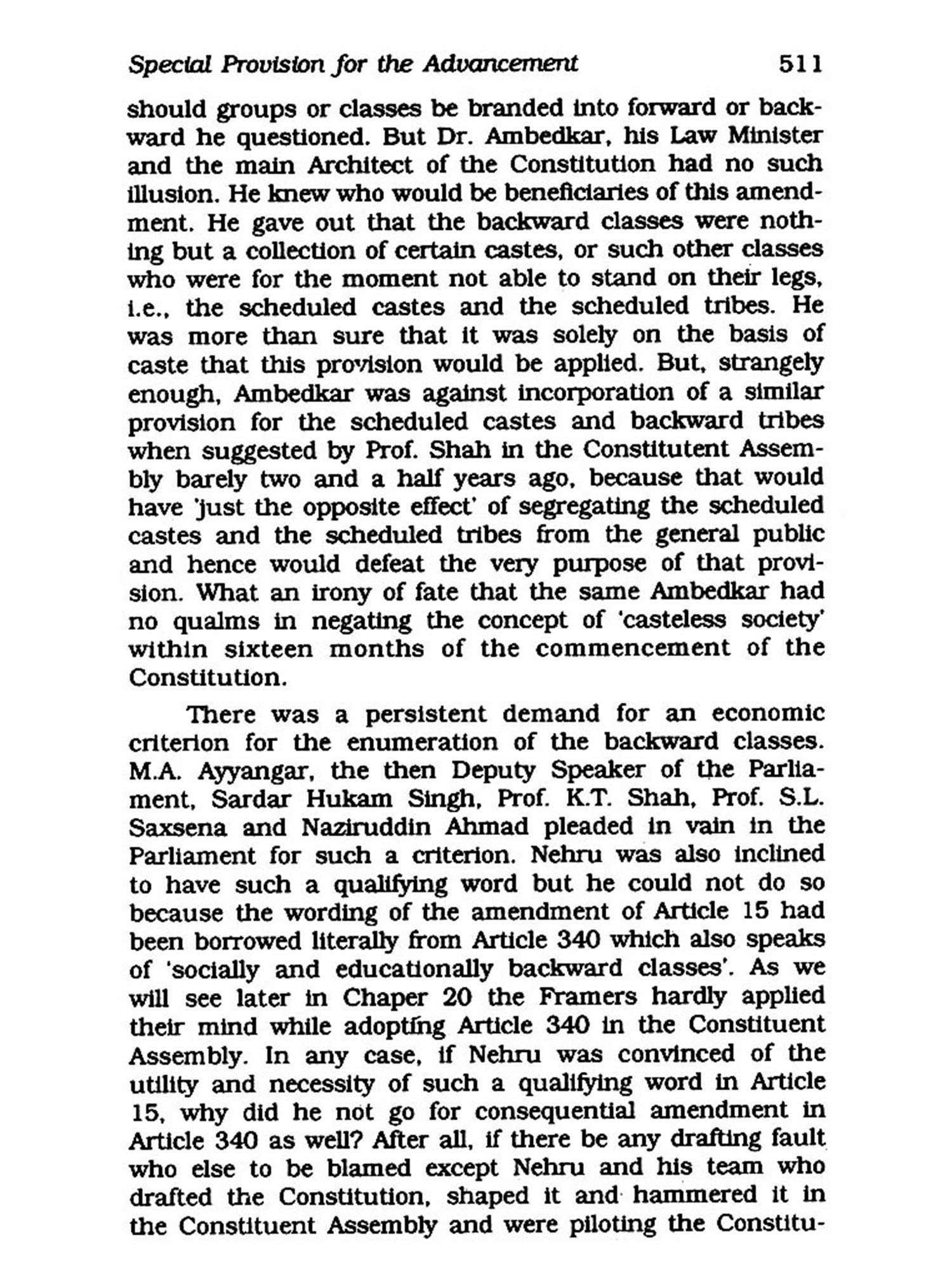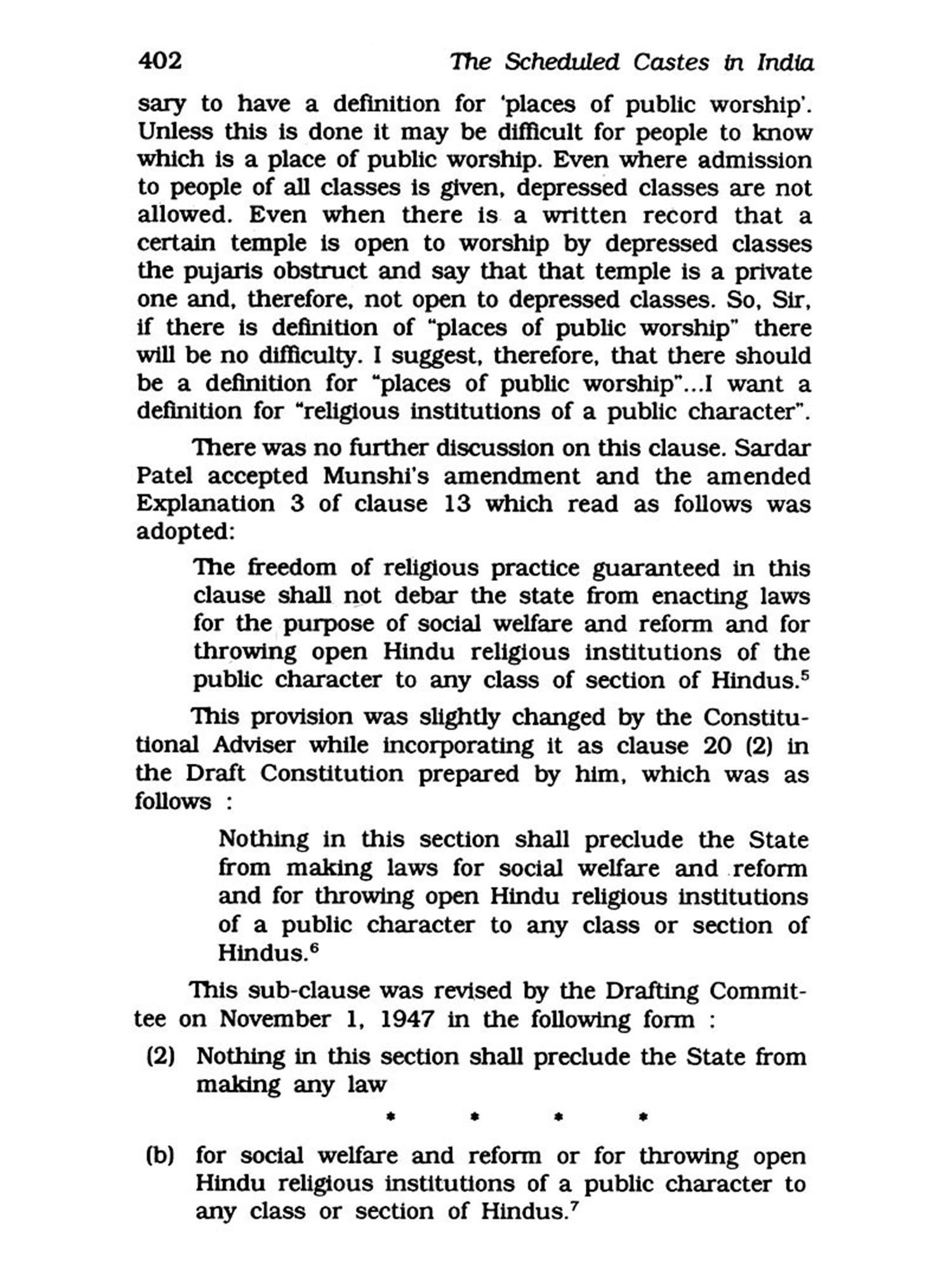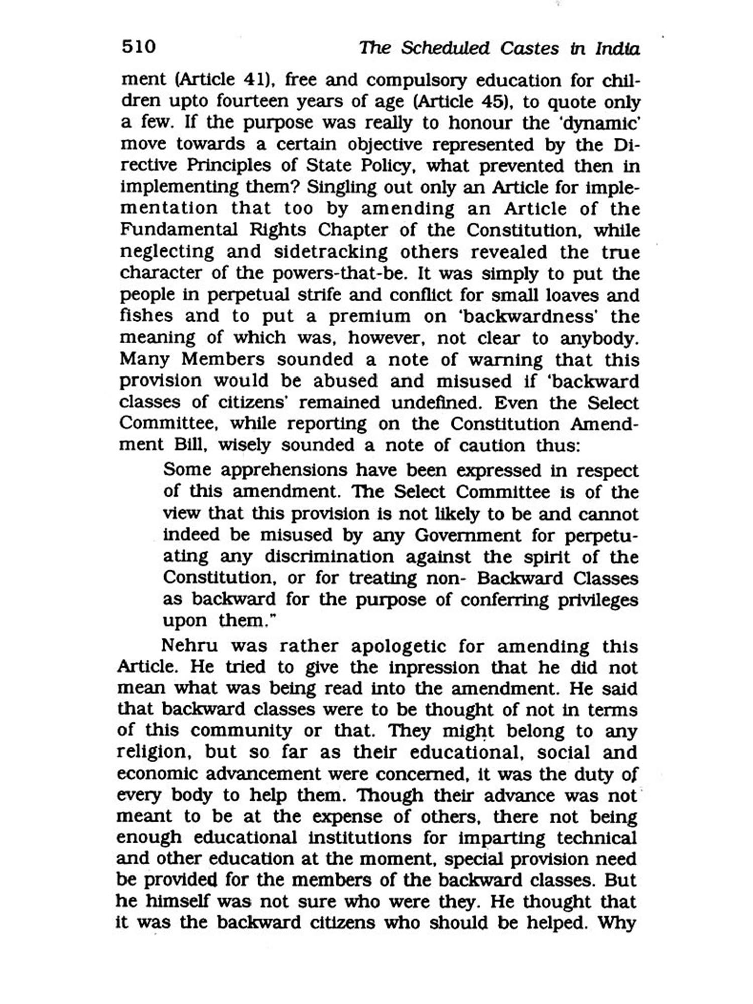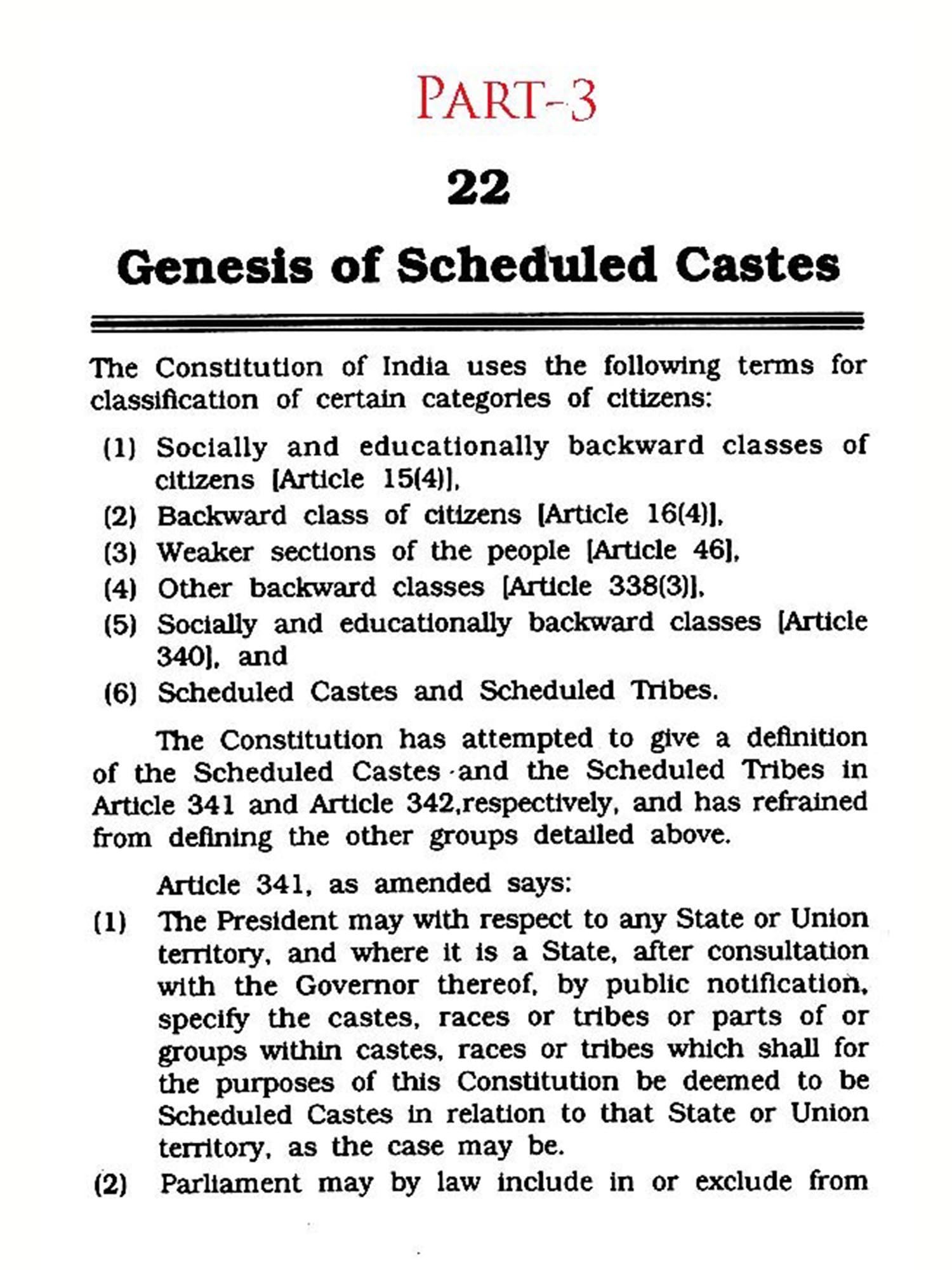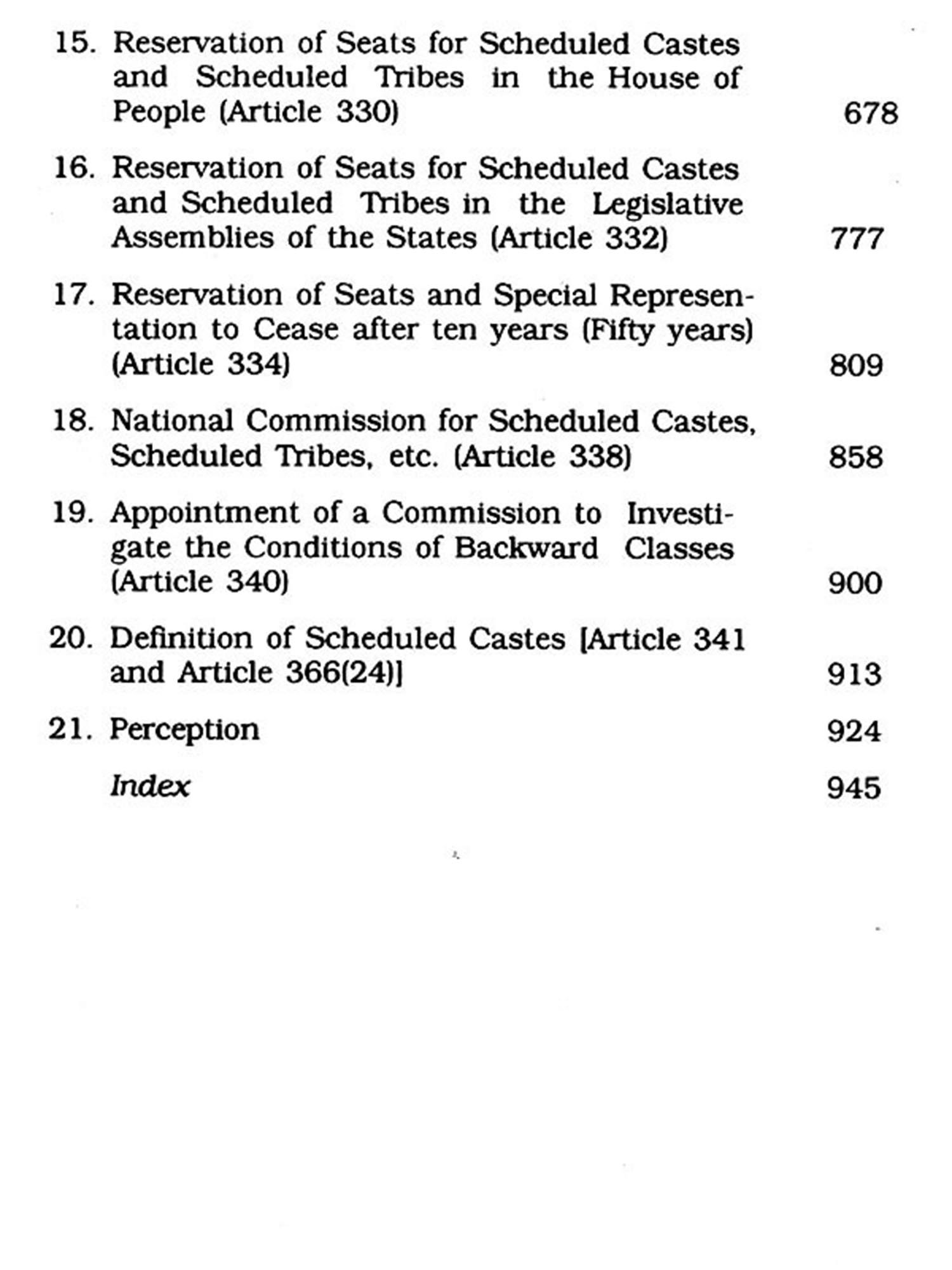 While doing the research work for my books "Communal-ism and Constitution" and "Disintegration and Constitu-tion", I stumbled upon the fact that as the process of constitution-making advanced, the Constituent Assembly decided to do away with the original scheme of providing safeguards to the minority communities because that would have perpetuated the communal divide. It, however, provided safeguards for the Scheduled Castes because their representatives had not only specifically asked for the same but also persistently demanded for their categorisation as a separate political economic and social minority. The debates in the Constituent Assembly and the compulsions of the Framers to provide safeguards for 'a section of Hindu community known as Scheduled Castes' prompted me to undertake an indepth study of the Scheduled Castes in all its facets. I knew it was a vast and complex subject and would require a lot of painstaking research. When I took up this project in 1992 my plan was to write a single book on this subject. As the study progressed I found that the subject was so enormous and engrossing that it would be difficult to do justice to it within the confine of a single book. So I planned to spread it to four volumes-all self-contained, yet continuum of the same subject.