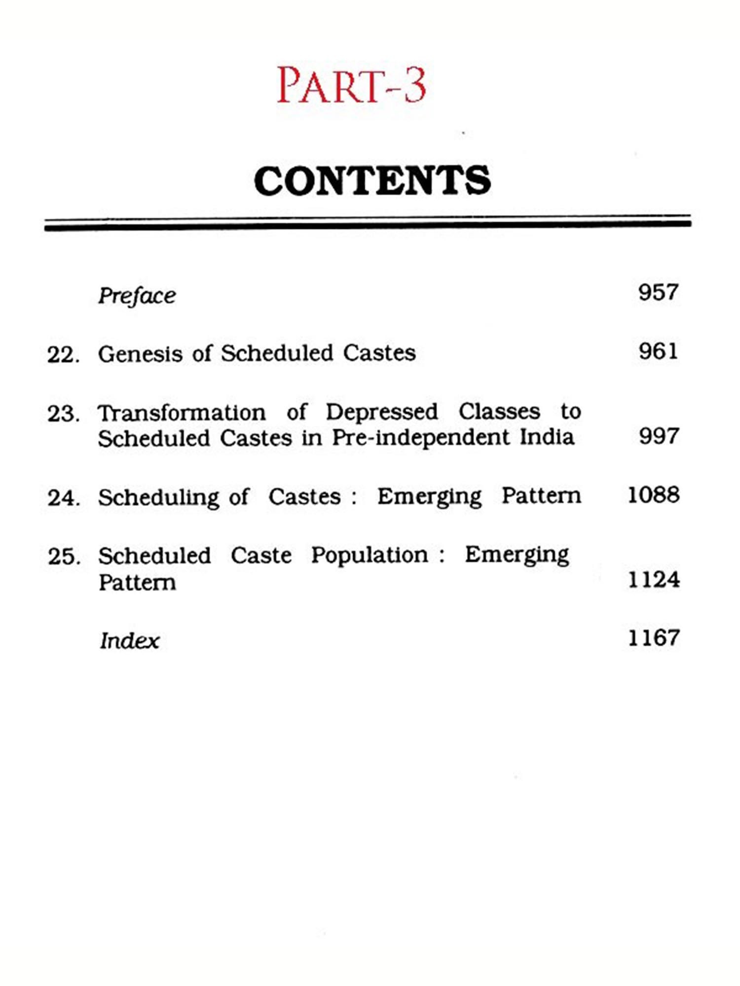 The third volume deals with the genesis, growth and demographic pattern of the Scheduled Castes.