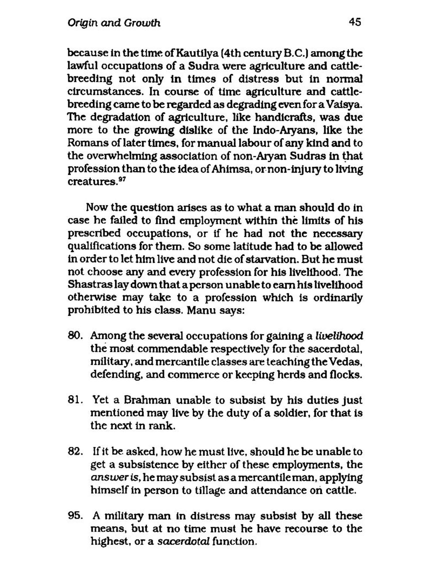 To understand the emergence of the 'Scheduled Castes' in its proper perspective, it is imperative to have a lirsthand knowledge about the caste system that developed in India through the ages and its relevance in the Indian context as also the role of the Britishers in caste matters. The first volume is, therefore, devoted to the study of the origin and growth of the caste system upto the British period, because the Scheduled Castes emerged as a separate entity in our body politic only towards the fag end of the British rule. The second volume discusses the framing of the constitutional provisions relating to the Scheduled Castes.