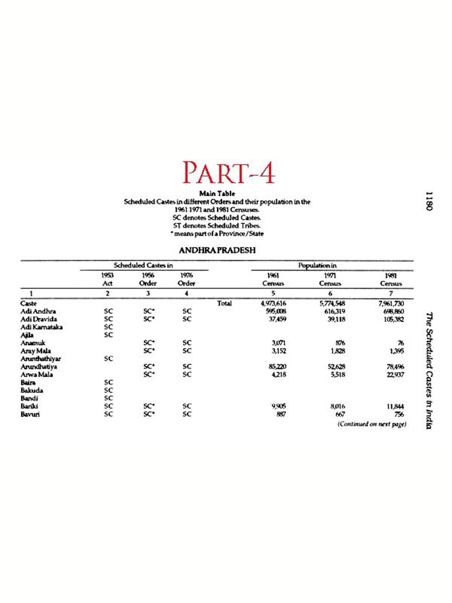 The fourth volume deals with the tables related to the scheduled castes of India.
