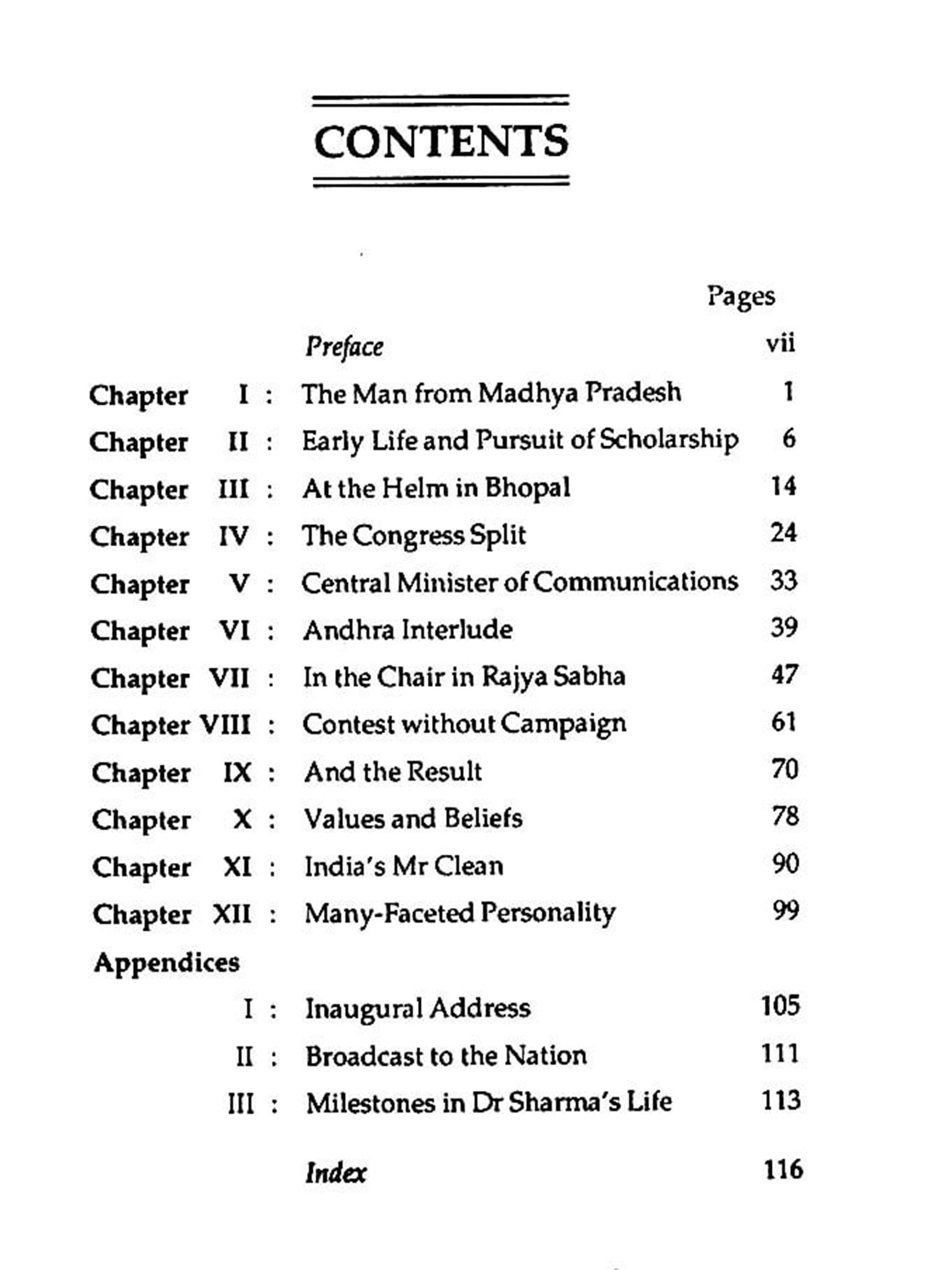 Needless to say, the conclusions and assessment are my own and I alone am responsible for any mistakes or inaccuracies. In portraying Dr Sharma's life and his activities in his various capacities, it has been my endeavour to draw a portrait of the man and his rise from humble beginnings to the highest office in the land. The weak spots have not been slurred over and, without indulging in adulation, some of the misconceptions about his role at crucial moments have been dispelled.