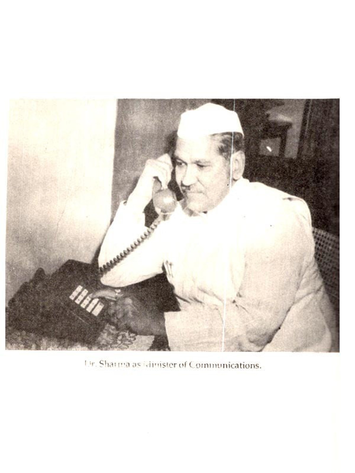 Mrs Indira Swaroop of the Madhya Pradesh Information Centre in Delhi not only suggested names of people who could throw light on Dr Sharma's life but made excel-lent source material available from Bhopal. The Research and Reference Division Library, in Shastri Bhavan in Delhi, placed their books and reference materials at my disposal. The staff helped in tracing references in published books and old magazines and saved me much time and effort. The Press Information Bureau made available their old records and cuttings files. The PIB, Photo Division and the Madhya Pradesh information people, through Mrs Swaroop's intervention, gave me access to their photographic collections. The reference section of AIR's News Services Division traced some important references for me.