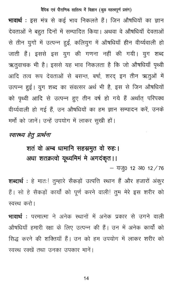 प्रस्तुत पुस्तक ""वैदिक एवं पौराणिक साहित्य में विज्ञान (कुछ महत्वपूर्ण प्रसंग)"" हमारे देश के विविध वैदिक और पौराणिक साहित्यों में उपलब्ध कुछ विशिष्ट मंत्रों और श्लोकों का संग्रह है जो आज के परिप्रेक्ष्य में वैज्ञानिक समुदाय के लिए पठन और चिंतन-मनन के लिए प्रेरित करने वाला है। यह सब इस बात का प्रमाण है कि हमारा अतीत कितना समृद्ध और प्रतिभाशाली रहा है।