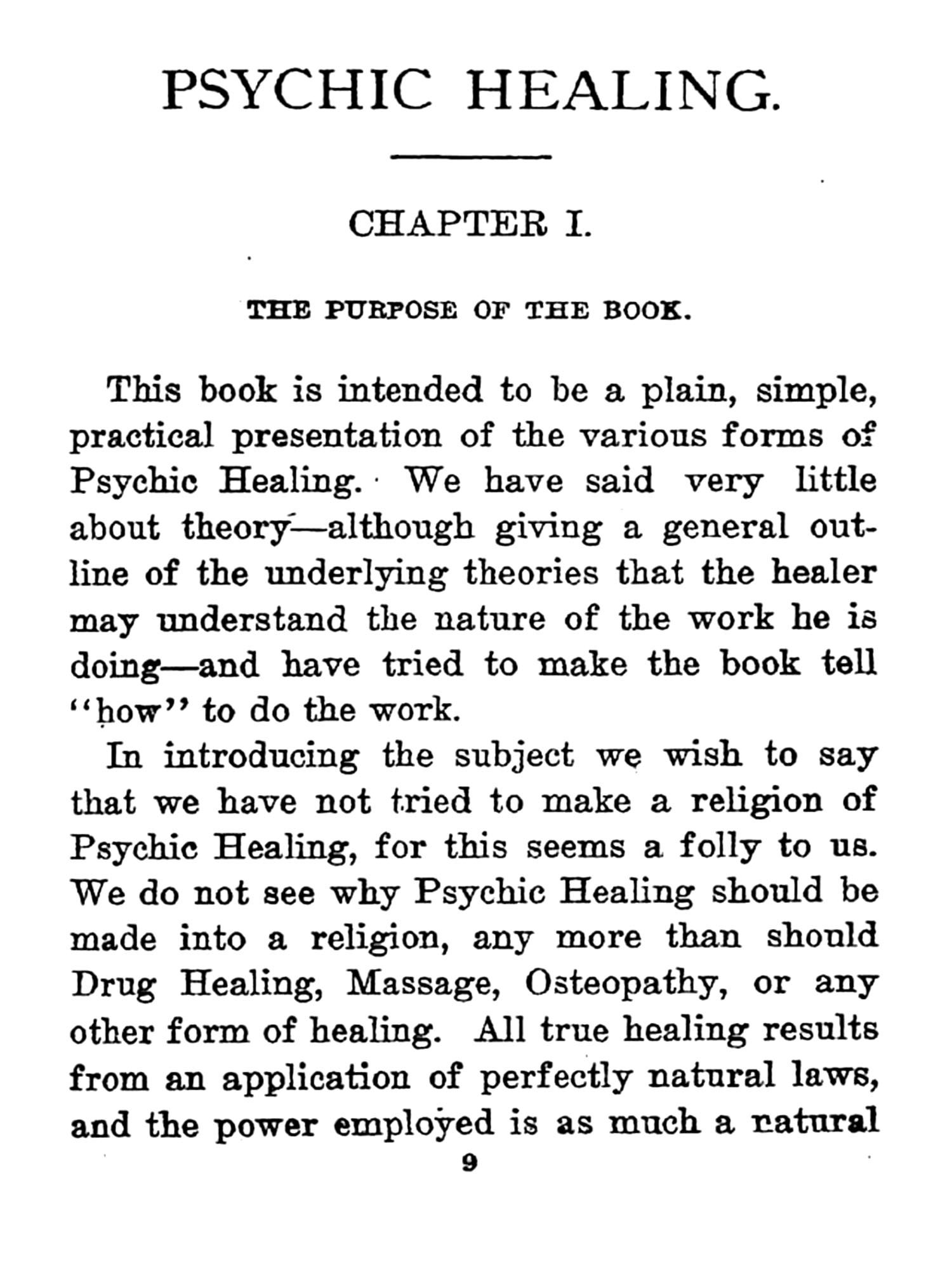 "The Science of Psychic Healing" by Ramacharaka, also known as Yogi Ramacharaka, delves into the practice of psychic healing, where the mind aids in bodily recovery. Author explains the body's energy system, affirming that mental power can manipulate this energy for healing. Covering energy principles, suggestion, and visualization techniques, the book explores the mind's role in healing and offers practical exercises. Drawing from yogic experience, Author provides a comprehensive understanding of psychic healing, illustrated with case studies. Overall, it guides those interested in enhancing well-being through the mind, offering insights and techniques for transformative healing.
