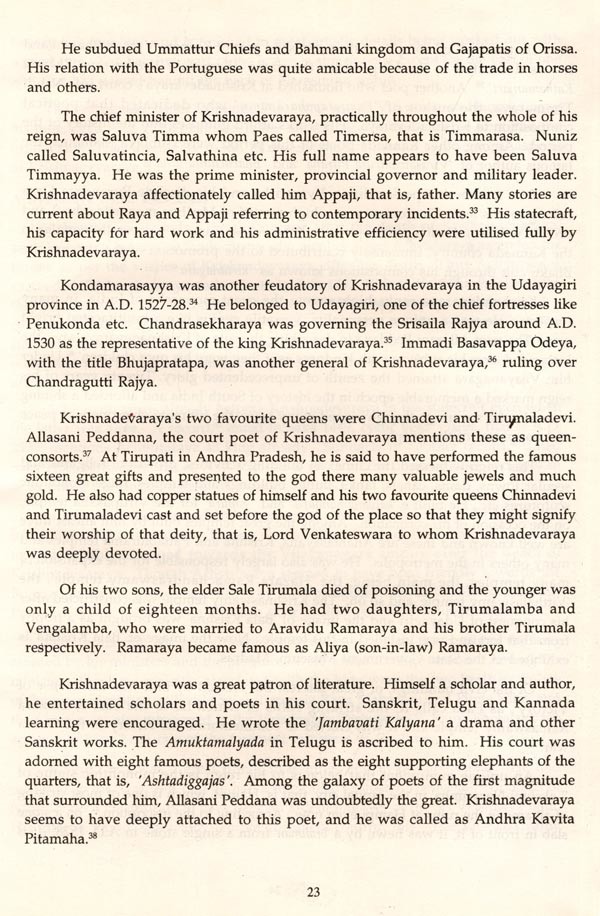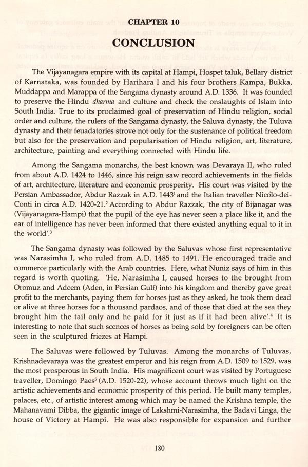 Since the inception of the much favoured and patronised research project, "Resurrection of Hampi" in the year 1982, by the Government of Karnataka, the Department of Archaeology and Museums has been conscientiously and consistently striving hard, sparing no efforts, to unfold further and further the history of Vijayanagara and its multifarious but bewildering achievements. Their operations involve large scale excavations, renovation and restoration of the exposed structures and other monuments and publication of books on varied aspects of research done on Vijayanagara studies, besides their own series of "Progress Reports", all of them throwing flood of new light on the study of Vijayanagara Empire, a welcome and record performance indeed.
