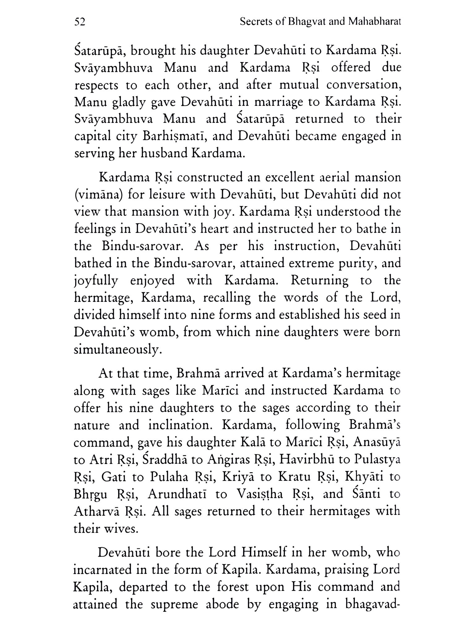 Dr. Radha Gupta was born and received her schooling in Deoband (U.P.). She completed her M.A. in Sanskrit from Meerut University and obtained her Ph.D. and D.Litt. degrees from Devi Ahilya University, Indore (M.P.). Her research work on the Yogaväsiştha and her previously published books Rahasya, Rāmāyaņa Rahasya, Gita Rahasya (written in Hindi), and Secrets of Ramayana, Secrets of Gita (written in English) are available through Parimal Publications, Delhi. Dr. Radha Gupta, along with her brother Shri Vipin Kumar, has compiled a comprehensive reference work on the Vedas and Purāņas titled Purāṇa-Subject Index, of which two volumes have been published.