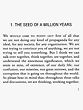 Man. . . must have asked a million years ago, from the beginning of time, if there is a reality, if there is a truth, if there is something timeless, something that cannot be measured by man. And that inquiry, that seed, is still with us. . . And during these talks we are going to find out whether it is possible for that seed to grow and flower, multiply and cover the earth. That is the function, the necessity of every man.