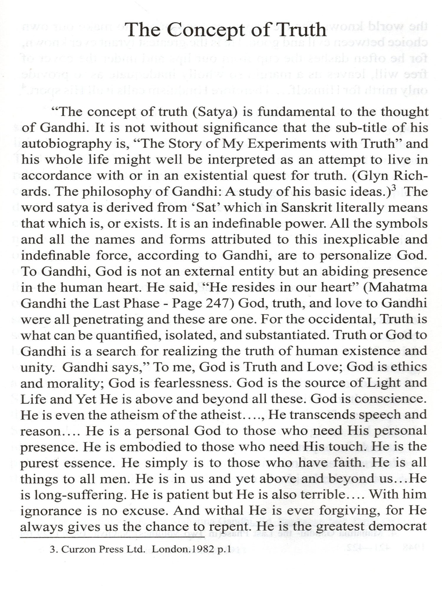 The central feature of Gandhi thought is man-centred, not system centred. Its premise is the moral autonomy of man and the possibility his lasting liberation from his own lower self and interpersonal and compelling dictates of the structure of society.