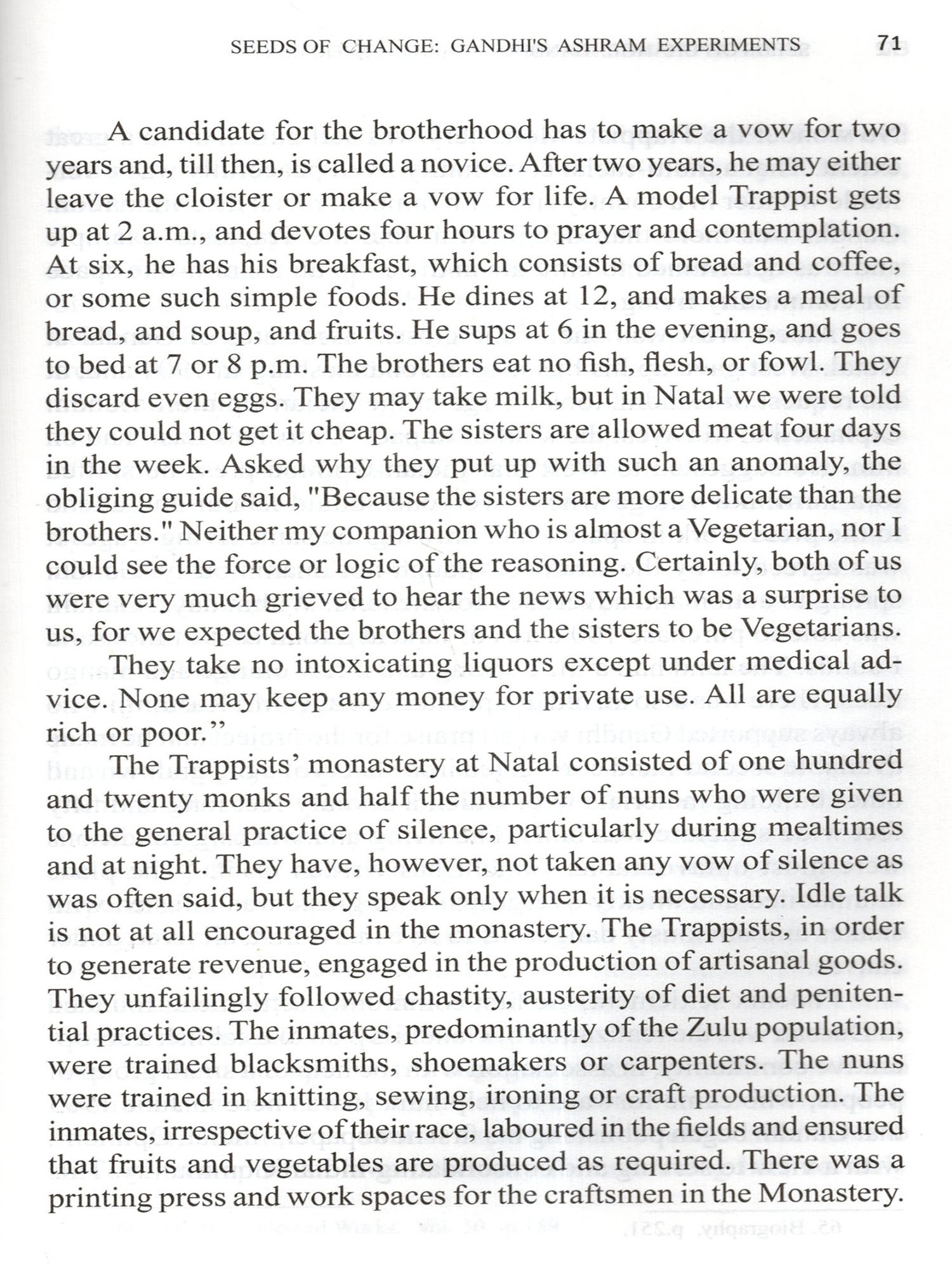 Gandhi reminds us that man bears within himself, in his inner lives secret stores of infinite possibility sources of boundless strength that can be unleashed and directed toward challenges and tribulations. Gandhi Ashrams served as the key to releasing this power, the profound and primeval potentialities that exist in all human beings.