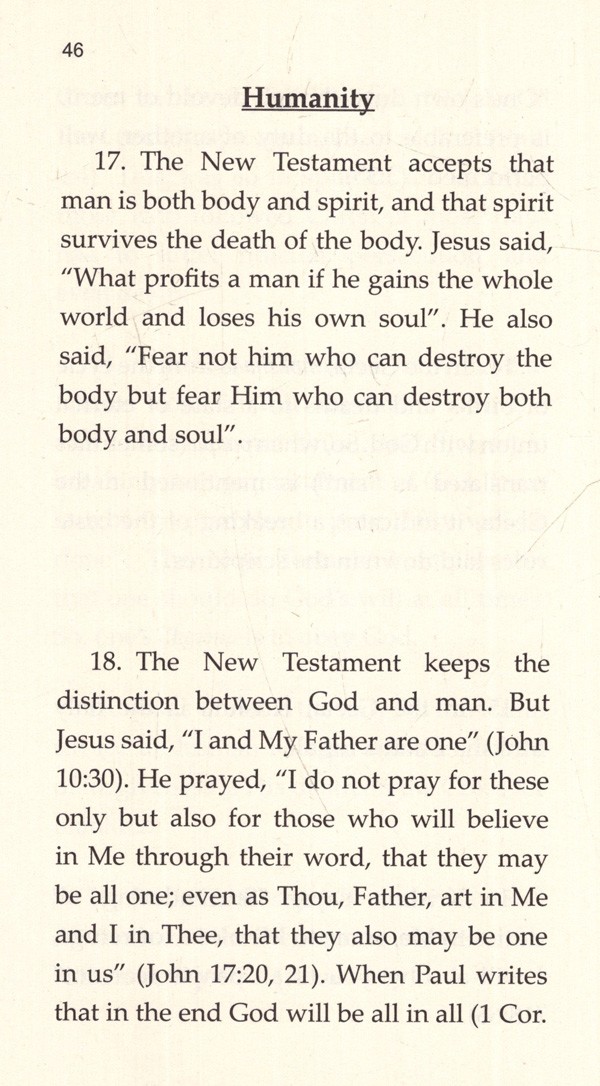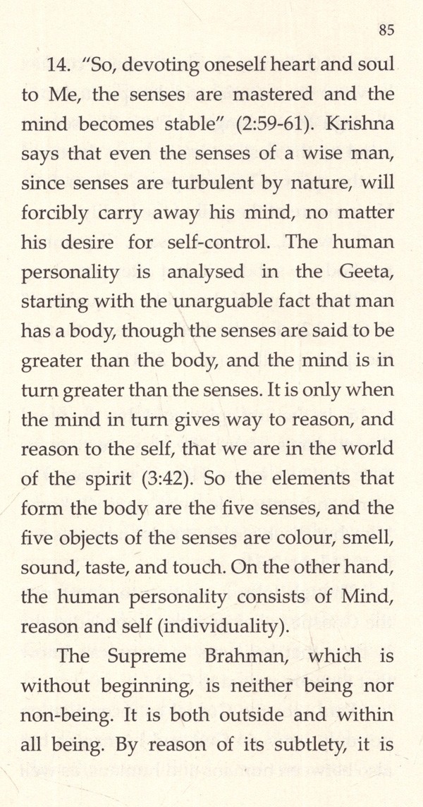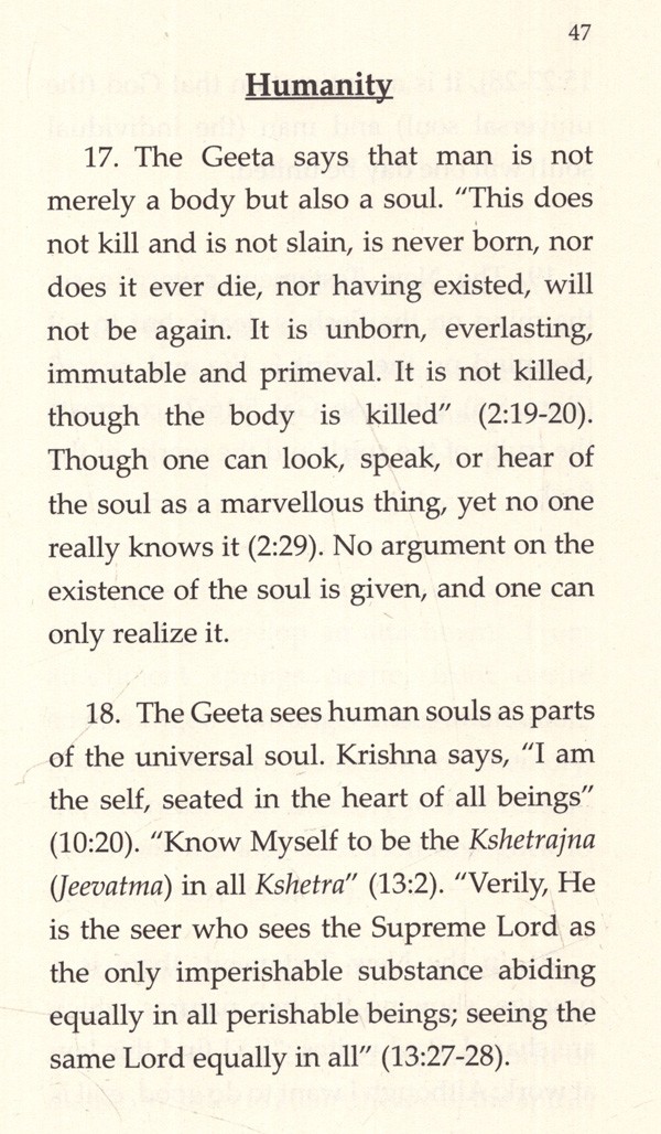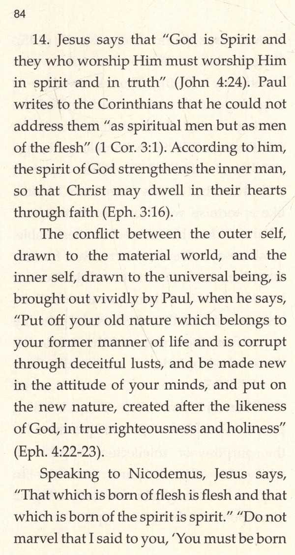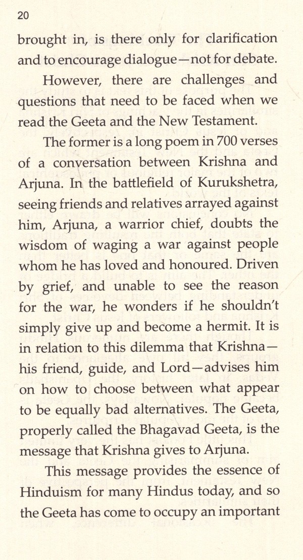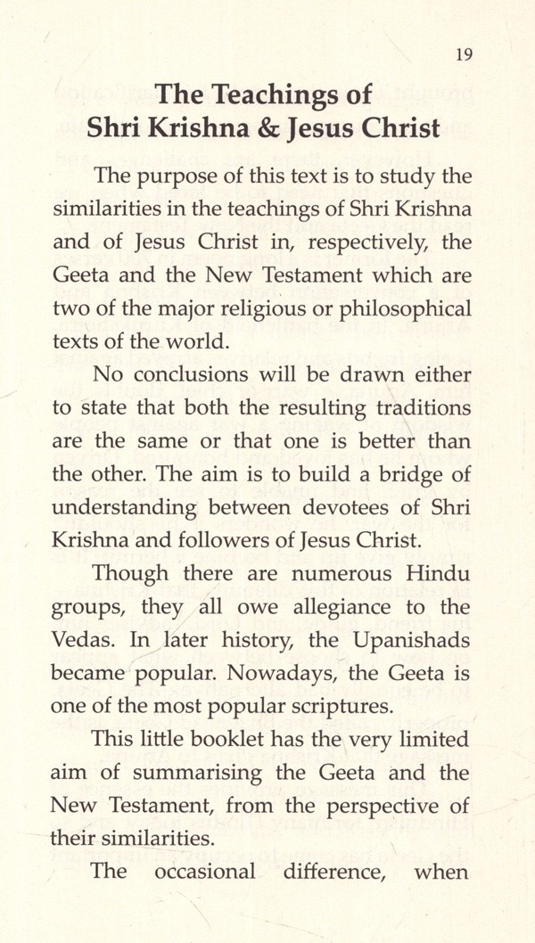Now on the contents themselves: The original text began its life as a series of lectures, and moves seamlessly from discussing the Geeta to discussing the New Testament and vice versa.