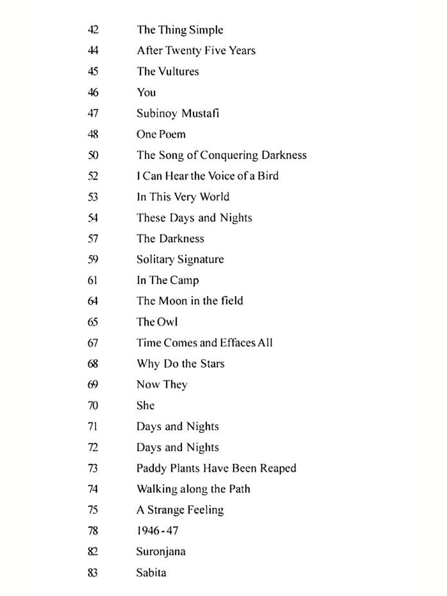 Primarily, I had no intention to translate Jibanananda Das as I had the feeling that Jibanananda cannot be translated. Jibanananda Das' poetical sensitivity is either too refined or too complex. As a poet, he was attached to the beauty of the world and particularly, the simple beauty of Bengal enchanted him. The existence of woman could invigorate his poetical perception. Love for nature and love for woman melt at a point and his poetry becomes unique and unparalleled. In his later period of life, he became the resident of Kolkata, but at his heart, he could remember Banalata Sen or Arunimal Sanyal who belonged to rural Bengal. The anguish and complexity of urban life burdened him and he felt the shackles, spoke of the pains of encaged life. Evidently, there are two Jibananandas - one remains attached to life and loves the beautiful and fascinating aspects of the world-the other is morose, depressed and over-burdened with pain and anguish. Both Jibananandas are equally conspicuous in his poems. In both forms, he is delicate, refined and complex. A translator should possess courage and conviction to translate such a poet. In my case, it was Mr. Anjan Saha who provoked me to fall in danger. Yet I got pleasure by translating such a difficult poet. Often I thought of giving up the job, but a strange feeling of pleasure enticed me to continue the translation. I must admit my limitations. A certain pride also engulfed me when I had been translating the poems. It seems that I was transported to the world of Jibanananda - Barishal, Dhansiri, Arunima Sanyal were revived at my heart and I was really engrossed. Inwardly, I thanked Mr. Anjan Saha, though outwardly I did not divulge my gratitude. Indeed, he inspired me to undergo the hazardous job. Now I should reveal my gratitude.
