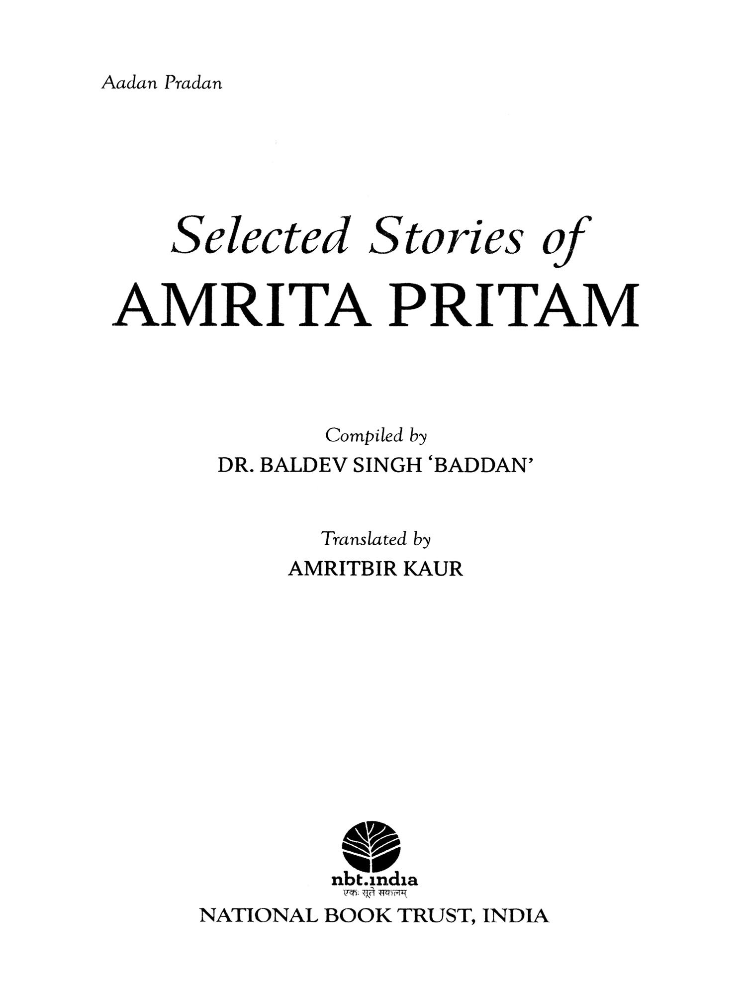Amrita Pritam (31.08.1919-31.10.2005), who was the first Punjabi poetess to win Gyanpeeth award for her poetry anthology 'Kagaz te Canvas', is also the recipient of various national and international awards for her poems and poetry anthologies. Talking about her literary contribution, she was not only bestowed with a degree of D.Litt. but also given the membership of Rajya Sabha in May 1986. In 1956, she was felicitated by the Bharti Sahit Academy Delhi for her poetic collection 'Sunehrh'. In the year 1958, she was honoured with the title of 'Shiromani Punjabi Sahityakar' by the Language Department of Punjab. She was awarded 'Padam Shree' by the Government of India in 1969 and 'Padam Vibhushan' in 2004. The 'Millennium Award' was bestowed upon her by the Delhi government, while the Punjab government honoured her with the 'Lifetime Achievement Award' and a cash of fifteen lakh rupees, recognizing her literary contributions. She has successfully experimented with her writing in various genres of literature like novel, poetry, editing literature, speeches, historical literature and research, prose, interview, character sketch, memoirs, folk tales, children's literature and translation. She has to her credit around 150 original and translated books. Amrita Pritam was also the editor of the literary monthly 'Naagmani' for a long time. Apart from writing in Punjabi, she has also penned down books in Hindi and English. Two of her novels were adapted for films and many television serials have been based on her short stories and novels. Her books have been translated into Gujarati, Marathi, Kannada, Malayalam, Odia, Assamese, Bangla, Sindhi, English, Tamil, Telugu, Urdu, Russian, Bulgarian, Serbian, Polish, Albanian, Spanish, French, Indonesian, Serbo-Croatian, Hungarian, Ukrainian, Arabic, Danish etc. Two telefilms have been made on the life and works of Amrita Pritam, 'Sachcho Sach Das Ve Jogi' and 'Aakhan Waris Shah Nu'. From amongst the novels of Amrita Pritam, 'Doctor Dev', 'Pinjar' and 'Hardit Singh Da Zindaginama' became so popular that they are talked about even today. Special efforts are being made to publish a compilation of selected stories from various collections of this multi-faceted personality, Amrita Pritam, by National Book Trust, India.