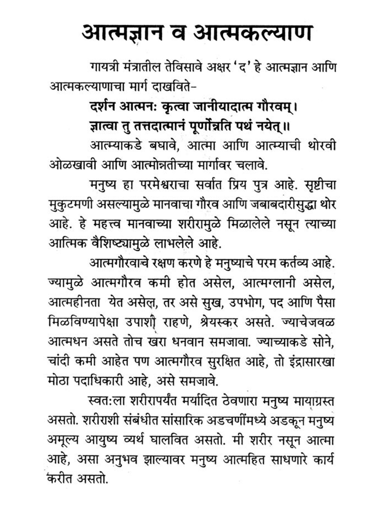 ब्रह्मज्ञानाचा प्रकाश- Brahmajnanacha Prakasha (Interpretation of the Letter 'Tat' of the Gayatri Mantra in Marathi)