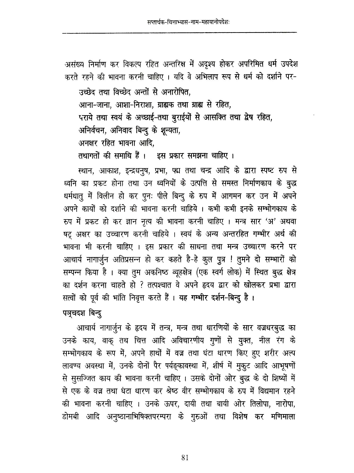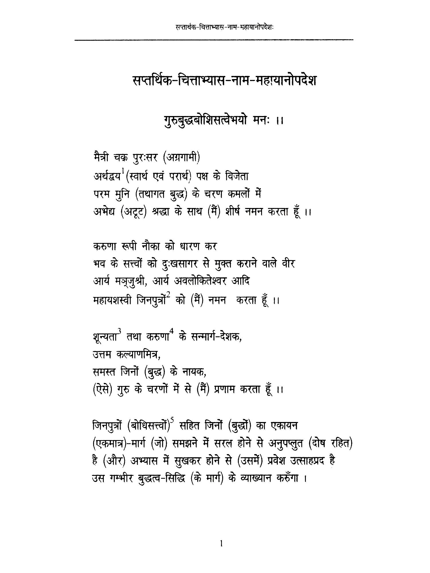 तिब्बत के महान् सिद्धाचार्य खेनचे छोईकी लोडोस ने तिब्बत की चार महान परम्पराओं के बारे में कहा है कि जिङमा और कार्बुद सम्प्रदाय साधना प्रधान परम्परा के हैं तथा साक्या और गेलुग अकादमिक (Academic) अर्थात् शास्त्र प्रधान परम्परा के है। प्रथम परम्परा के अनुसार साधक प्रारम्भ में मानव जीवन की दुर्लभता उसकी क्षणिकता, कर्मफल और संसार के दोषों पर गम्भीरता पूर्वक चिन्तन करता है। साधक के अन्दर ये विचार जितना प्रबल होगा उतना ही वह व्यक्ति आध्यात्मिक होगा। यही चित्त अभ्यास का सोपान है। श्रावकयानी इसी बुनियाद पर प्रतीत्य-समुत्पाद के सिद्धान्त का अनुकरण और कठोर विनय नियमों का पालन कर चार मुद्राओं का अधिगम करते हुए मोक्ष की प्राप्ति करता है। महायानी साधक बोधिचित्त उत्पन्न कर दस पारमिताओं की साधना कर बुद्धत्व की प्राप्ति करता है। वज्रयानी साधक, अर्थात् तीव्र इन्द्रिय साधक वज्रयान में कहे गए उत्पति कम और निष्पन्न साधना द्वारा इसी जन्म में बुद्धत्व की प्राप्ति करने का प्रयास करता है। वज्रयान के इसी मार्ग से भोट देश की ञिङमा परम्परा निर्भोग व्यतिकान्त द्वारा और कार्युद परम्परा नाडपाद की षड्योग साधना द्वारा इसी जीवन में बुद्धत्व की प्राप्ति का प्रयास करती है। शास्त्रीय परम्परा बौद्धों के चारों प्रस्थान तथा अभिधर्म, विनय और सूत्र आदि आध्यात्मिक दर्शनों के गम्भीरतापूर्वक अध्ययन-अध्यापन पर जोर देते हैं। यह ग्रन्थ जैसा इसके नाम से ही स्पष्ट है, प्रथम परम्परा का अनुसरण करता है । मैं संस्थान के शोधाधिकारी, खनपो (डॉ०) कोनछोग रिगज़िन को इस अनुवाद कार्य के लिए साधुवाद देना चाहता हूँ।