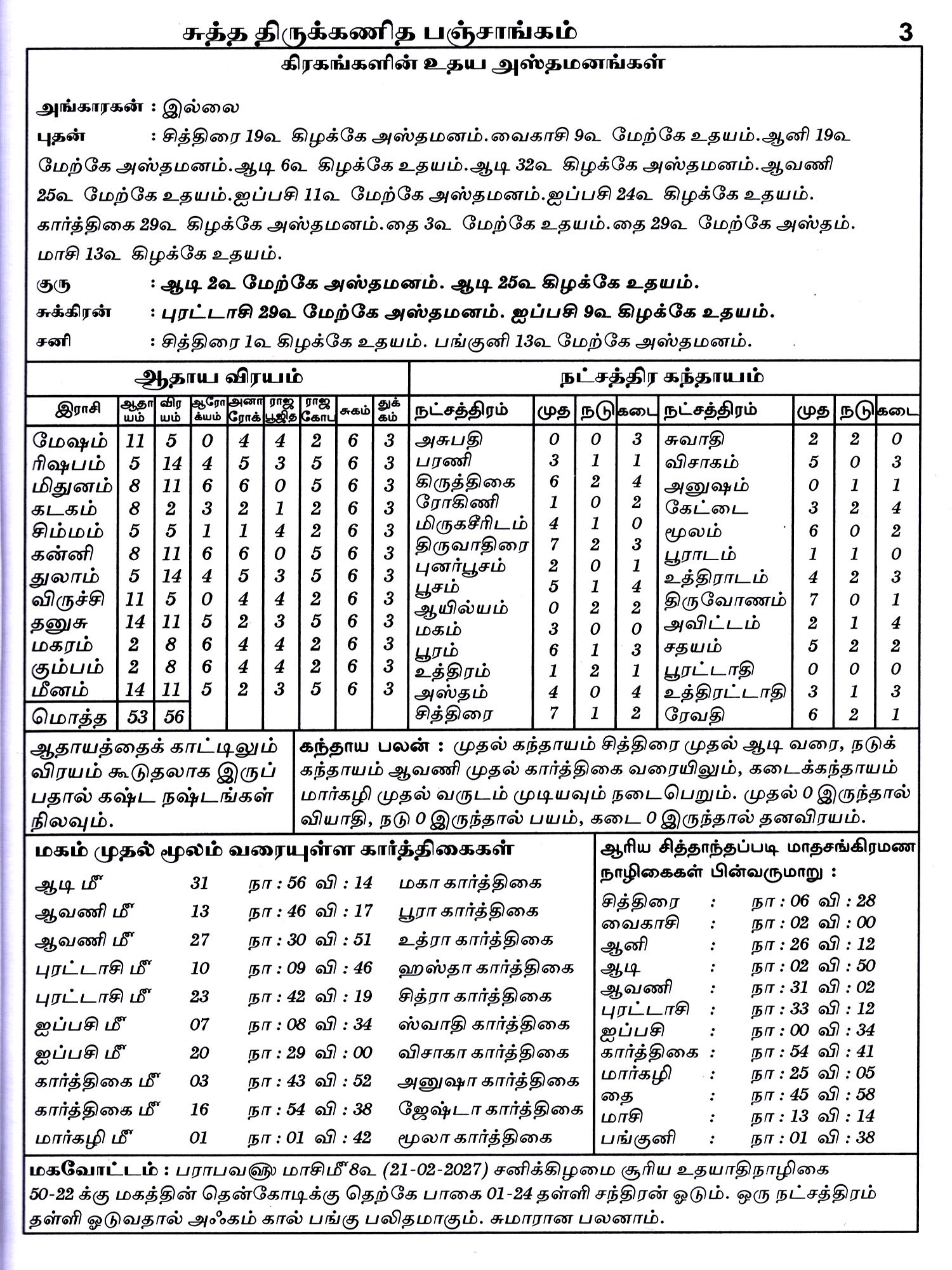 சுத்த வாக்கிய பஞ்சாங்கம்: Karpagam Vakya Panchang (Tamil)