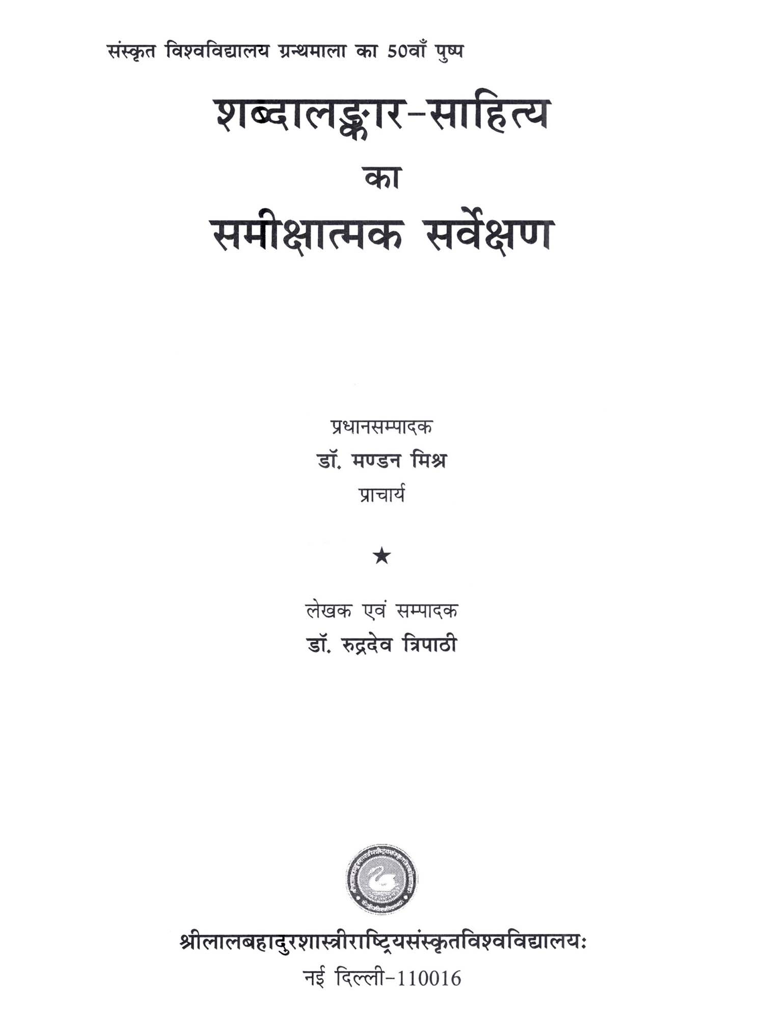 Publisher: Shri Lal Bahadur Shastri Rashtriya Sanskrit Vidyapeetha