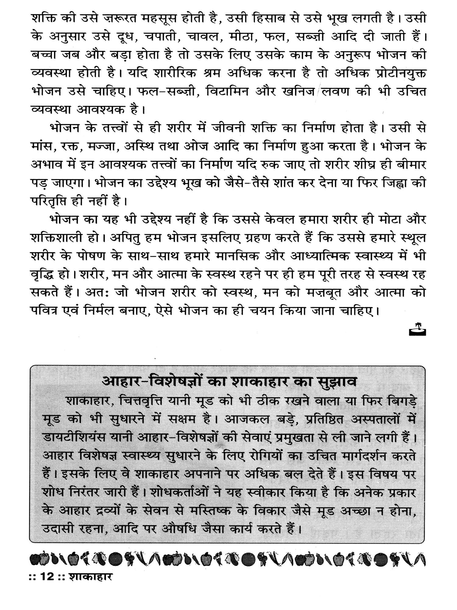 बात कड़वी है, लेकिन गंभीरता से विचार करने योग्य है। विचार करना इसलिए भी जरूरी है क्योंकि अपने ग़लत आहार से हम न केवल अपना शरीर बिगाड़ लेते हैं बल्कि अगली पीढ़ी को वंशानुगत रोगों का पुलिंदा बांध कर दे जाते हैं। लाइलाज वंशानुगत रोगों की पीड़ा भोगने वाले को यह पता भी नहीं होता है कि वह किसकी करनी का फल भोग रहा है? इस पुस्तक में ख़ासकर शाकाहार से जुड़े कई महत्त्वपूर्ण तथ्यों को अत्यंत सरल और सहज रूप में प्रस्तुत किया गया है, जो हर व्यक्ति के जानने योग्य है।
