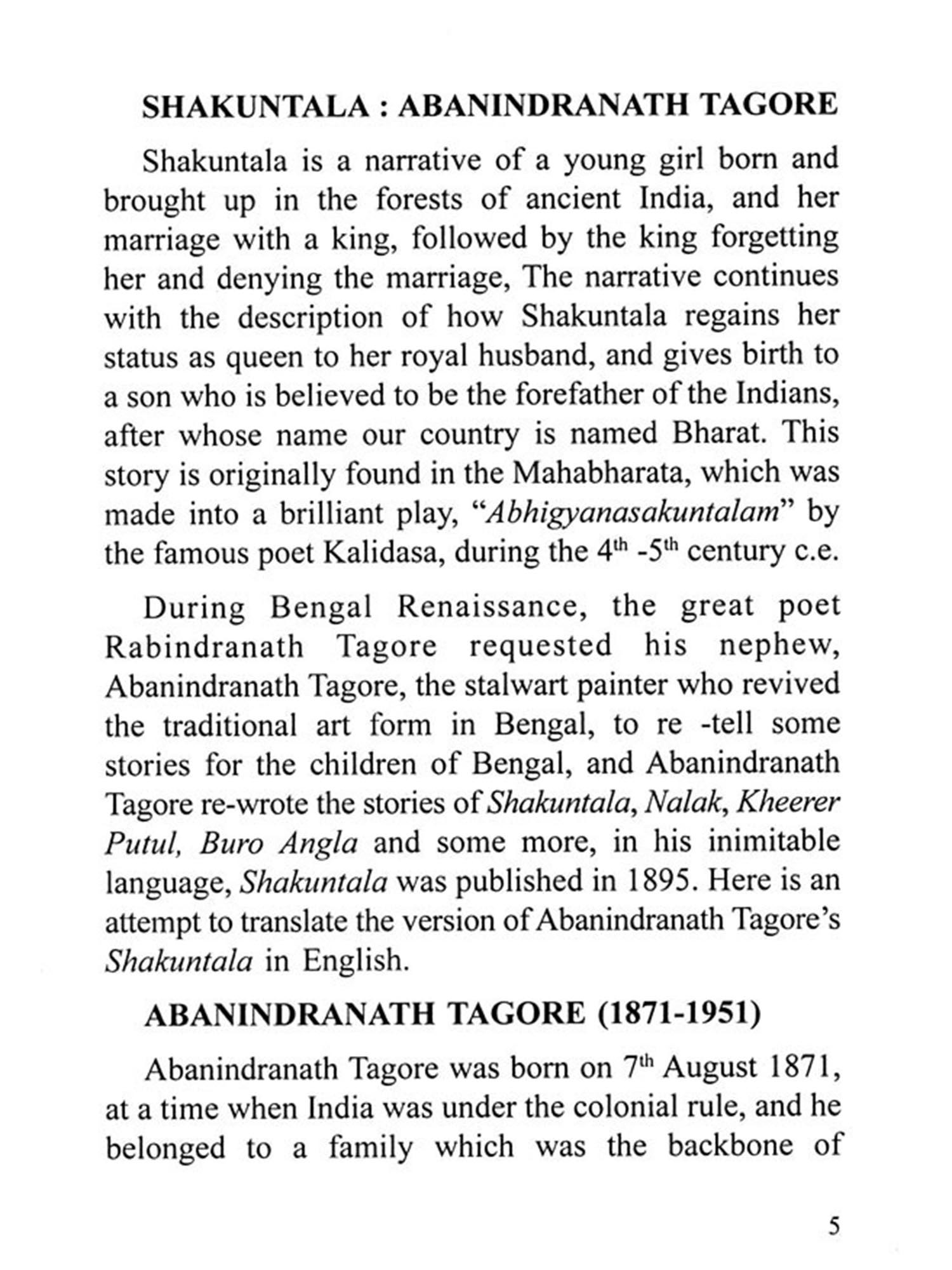 Abanindranath Tagore, rewrote some classic stories for the children of Bengal, during 19th century. Here is a translation of Abanindranath Tagore's Shakuntala in English.
