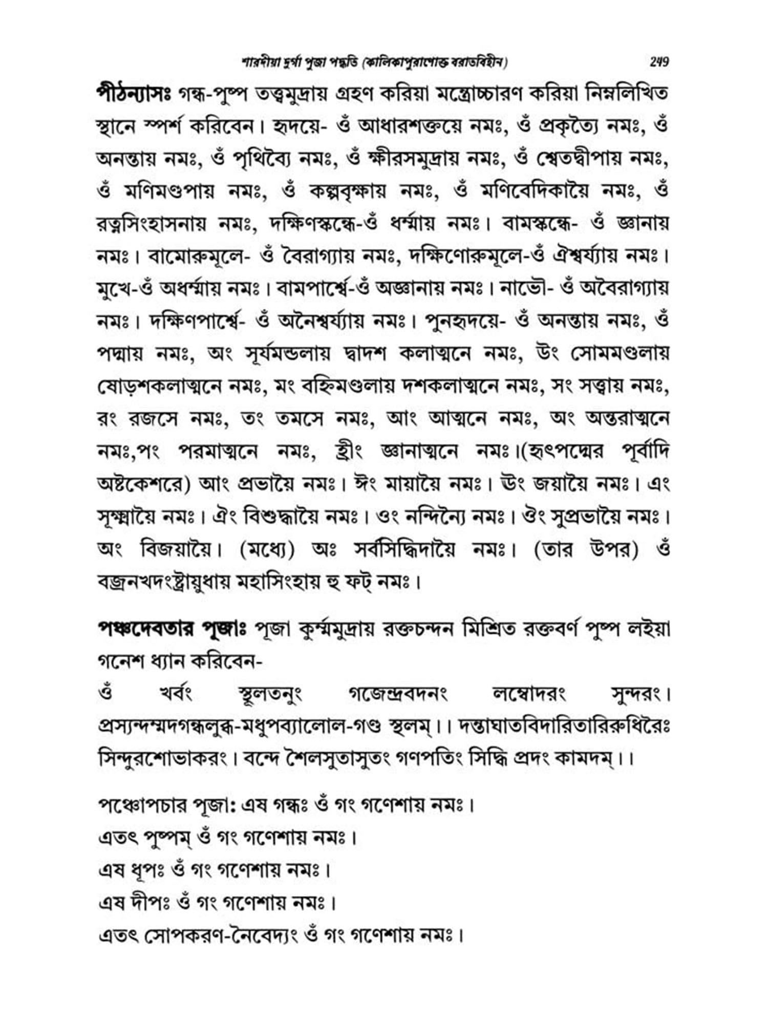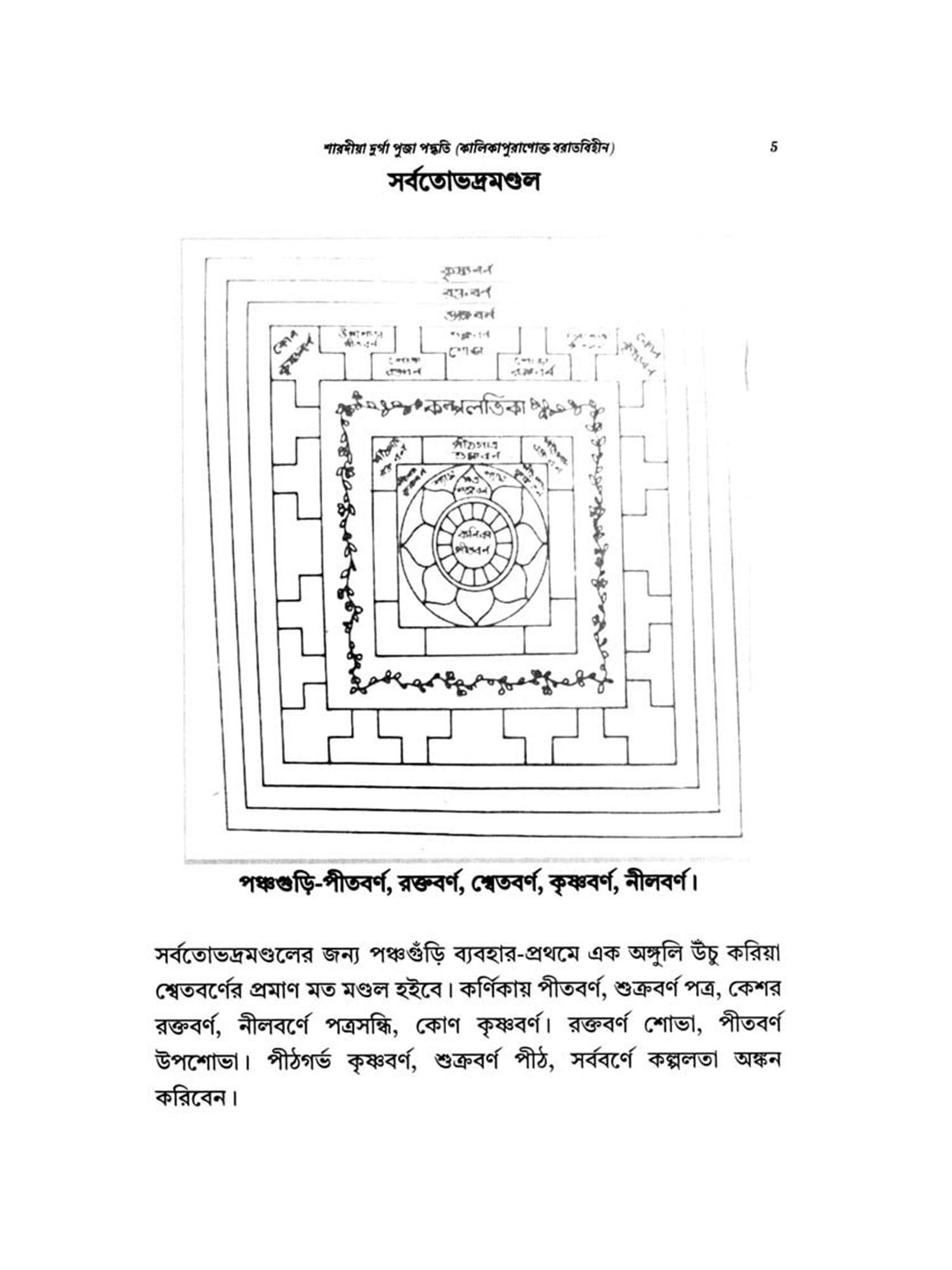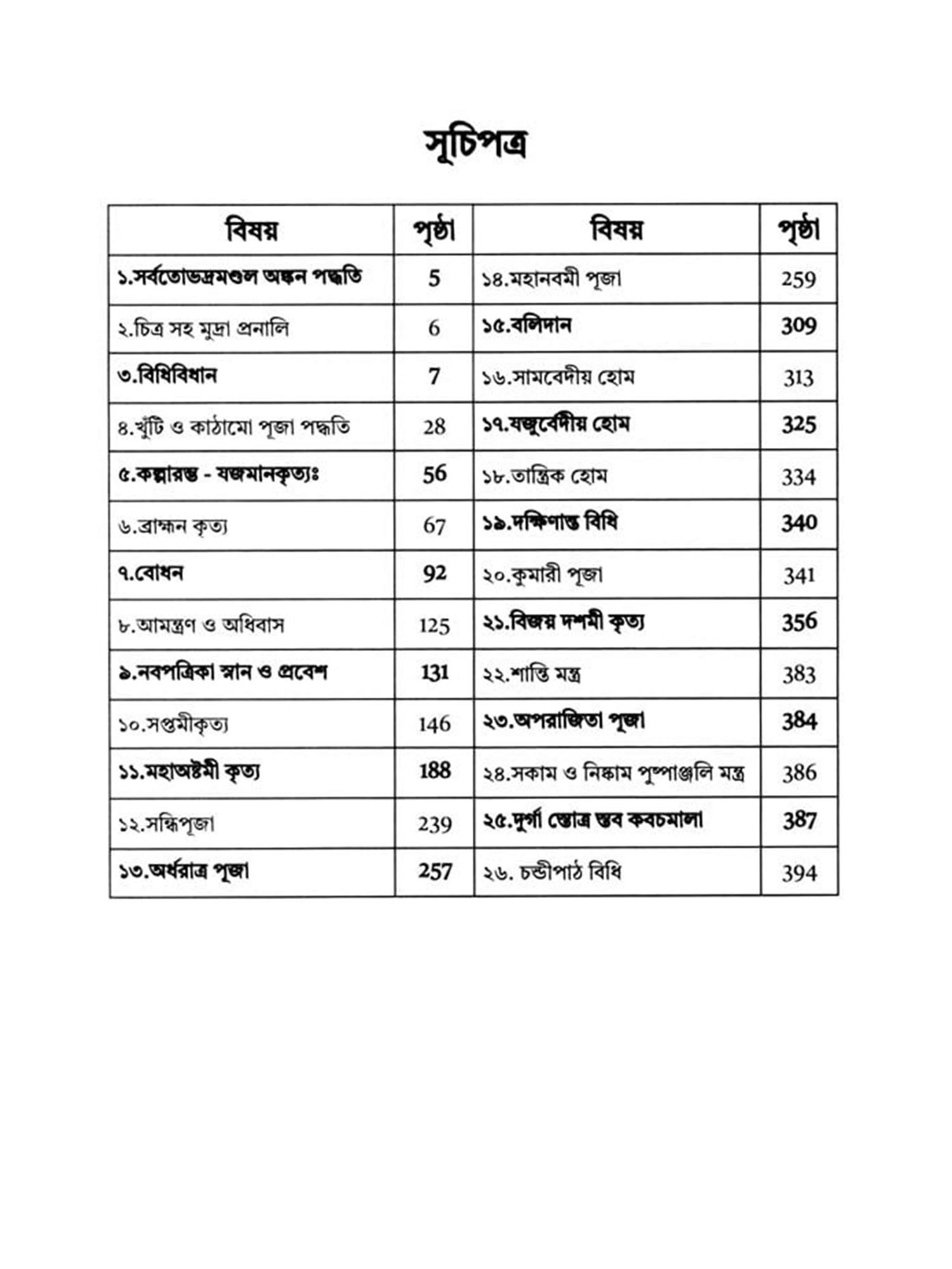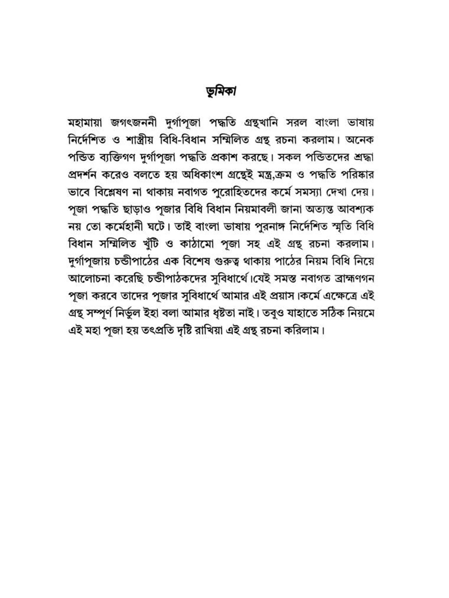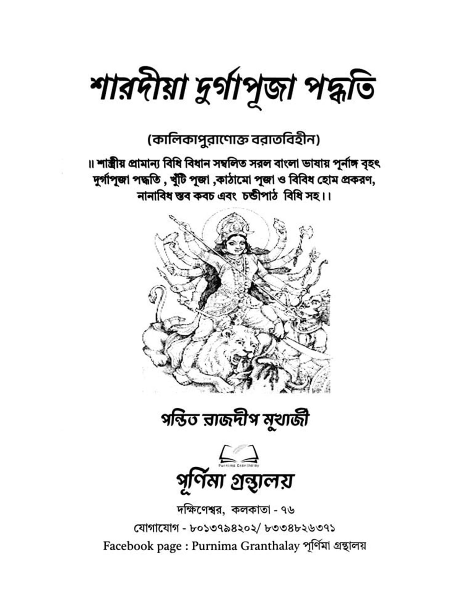 Complete and comprehensive Durga Puja system in simple Bengali language with scriptural evidence, rules and regulations, including pole worship, structure worship and various types of home offerings, various hymns, kavach and Chandipath rules