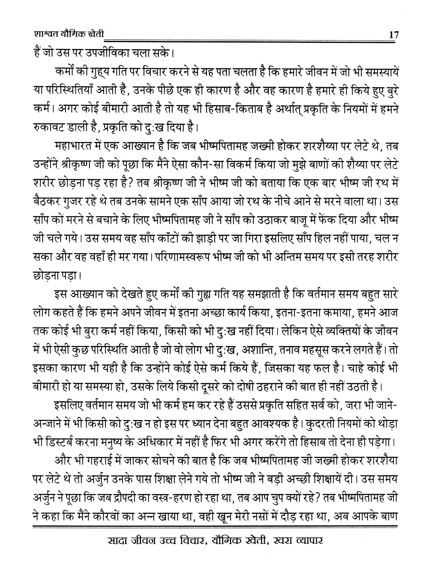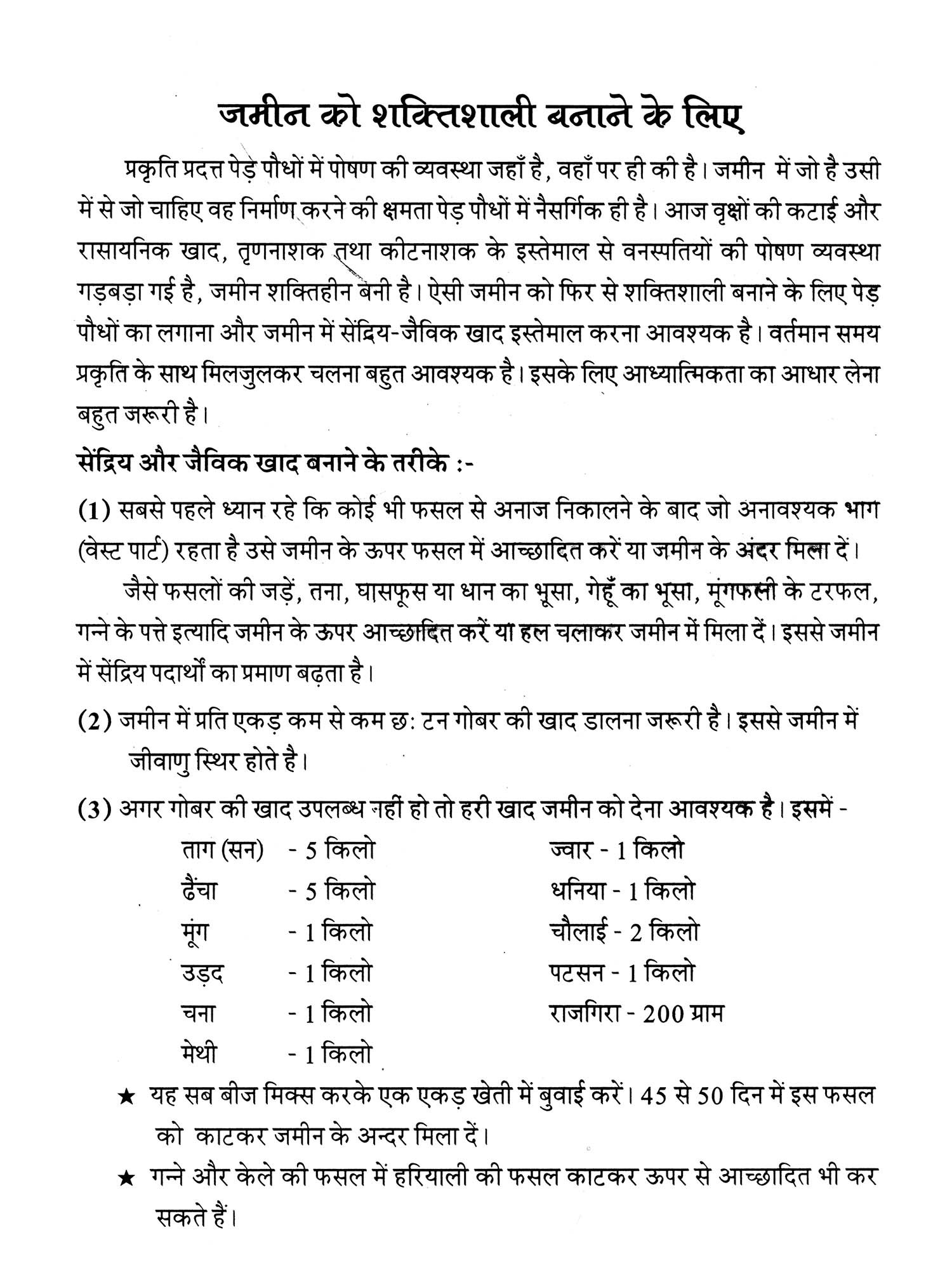 इसी शुभ भावना से यह "शाश्वत यौगिक खेती" नामक पुस्तक तैयार की गयी है। आशा है किसान भाई-बहनों को इस पुस्तक द्वारा खेती करने की नवीन विधि की सही जानकारी प्राप्त होगी।