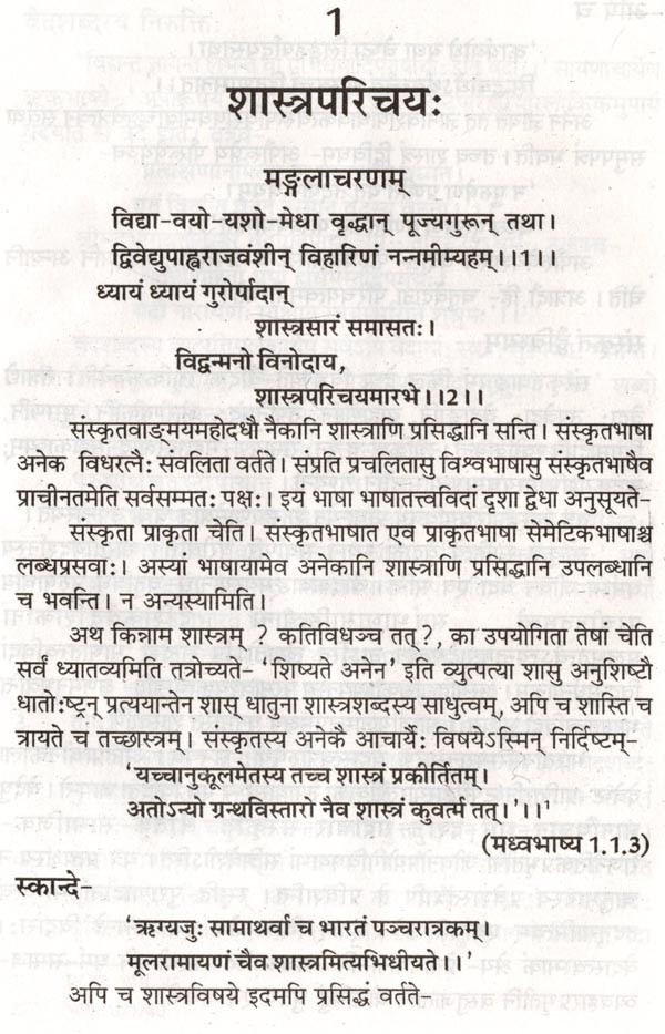 नास्त्यत्र स्वल्पतमोऽपि संशीतिलेशो यदस्यां संस्कृतभाषाया-मपारपारावारीणि अनन्तशास्त्ररत्नानि निमग्नानि सन्ति। यो तदन्तस्तले सम्प्राप्यैवाधिगन्तुं शक्यते । तत्र वेदा-वेदाङ्ग-दर्शन-पुराणेतिहास- काव्यादीनि शास्त्राणि, यदेकमेकं शास्त्रं गहनं गभीरानन्तञ्चेति। यावज्जीवनमध्ययनं कृत्वाऽपि मानवेन पारं न पार्यते। अत एव केन विदुषा सत्यमुक्तं यद् अनन्तपारं किल शास्त्रजातम् स्वल्पं तथायुर्बहवश्च विघ्नाः "इति मनसि निधाय चिराय चेतसि समारोपितोऽयं संकल्पकल्पद्रुरद्य भगवदनुकम्पया स्वतन्त्रो गद्यमयः सन्दर्भः छात्राणां संस्कृताध्यायिनामन्तेवासिनाञ्च कृते सौकर्येण शास्त्रपरिचयस्वरूपप्रतिपत्यर्थञ्च सविशेषमेष उपक्रमः। यद्यपि शास्त्रविषयमधिकृत्य यैर्विद्वद्भिः लेखनकार्यं कृतं तदस्ति-