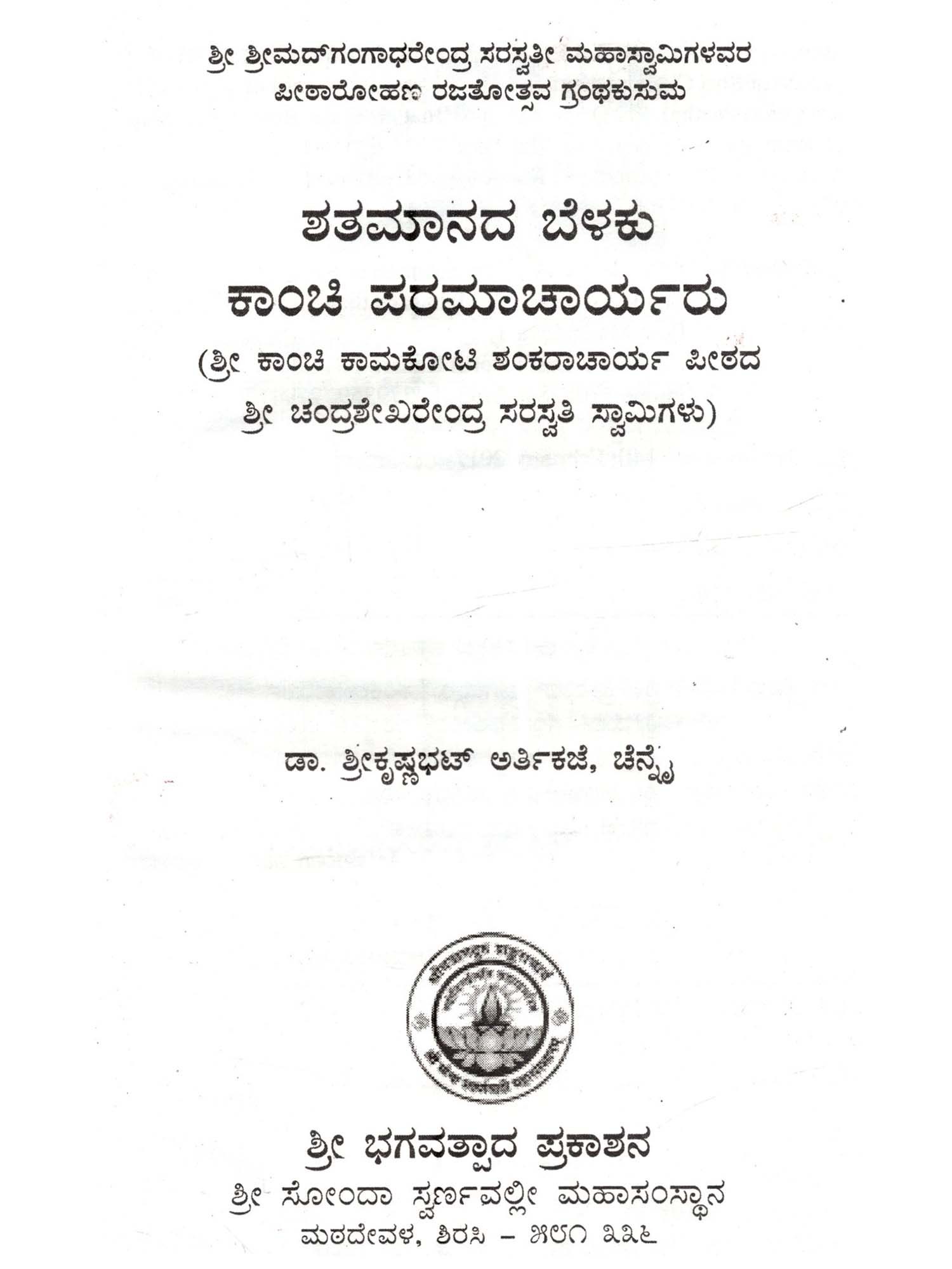 ಸ್ವಾಮಿ ಶ್ರೀ ಚಂದ್ರಶೇಖರಭಾರತೀ ಜಗದ್ಗುರು ದರ್ಶನ- Swami Sree Chandrasekhara Bharati Jagadguru Darshana (Kannada)