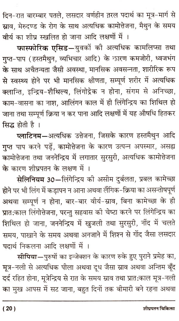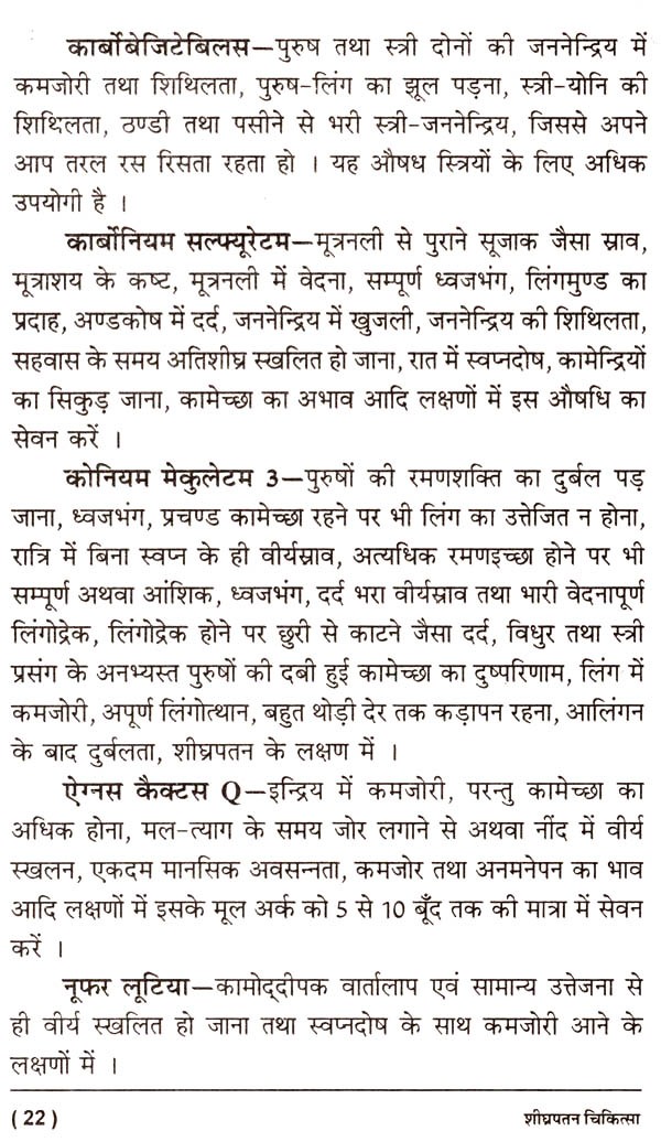 (Causes of premature ejaculation, symptoms, essential duties of the patient, diet and a brief description of homeopathic, biochemical, ayurvedic, unani and naturopathy treatments for disease prevention)