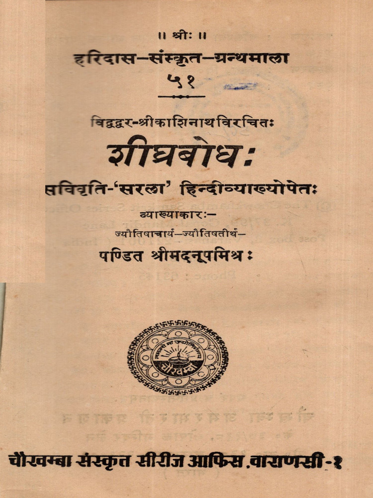 शीघ्रबोधः- सरला व्याख्योपेतः: Shighra Bodha- Simple with Explanation (An Old and Rare Book) Astrology Book