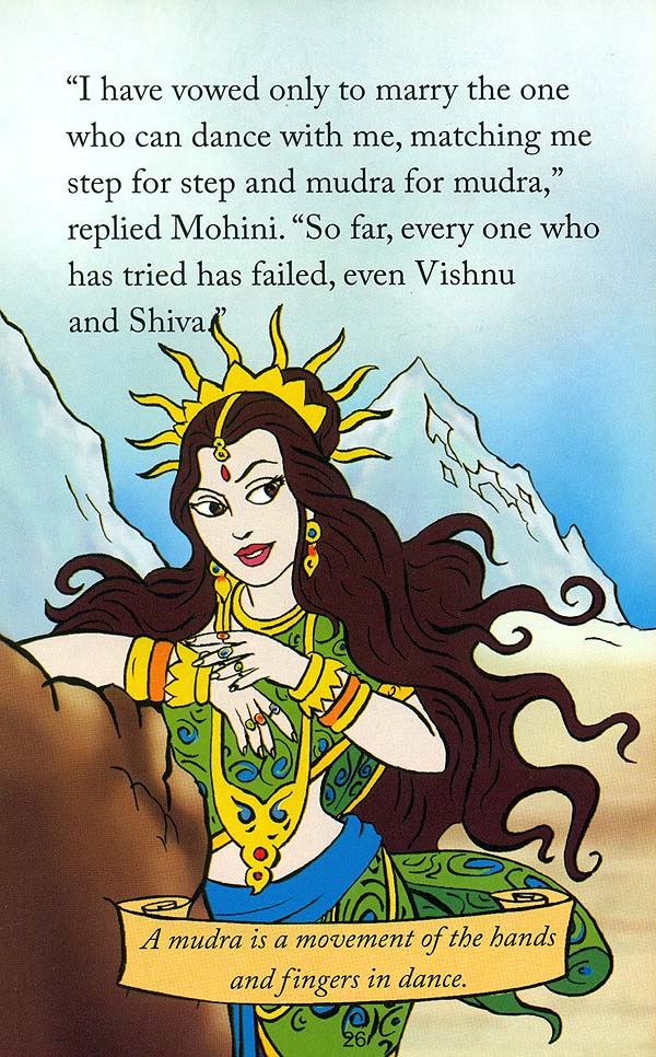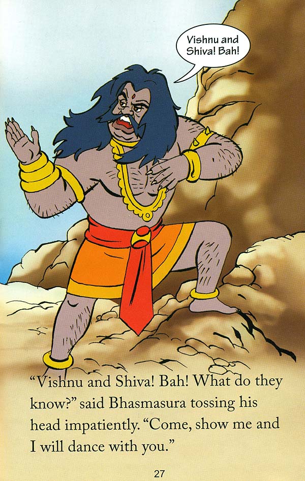 Bhasmasura, the demon, has Shiva in a fix. The good-natured god has granted him a boom that any person whom he touched on the head will turn to ash. And now the evil Bhasmasura wants to test the boon on Shiva’s head. As Shiva runs for his life, his good friend Vishnu decides to step in and help