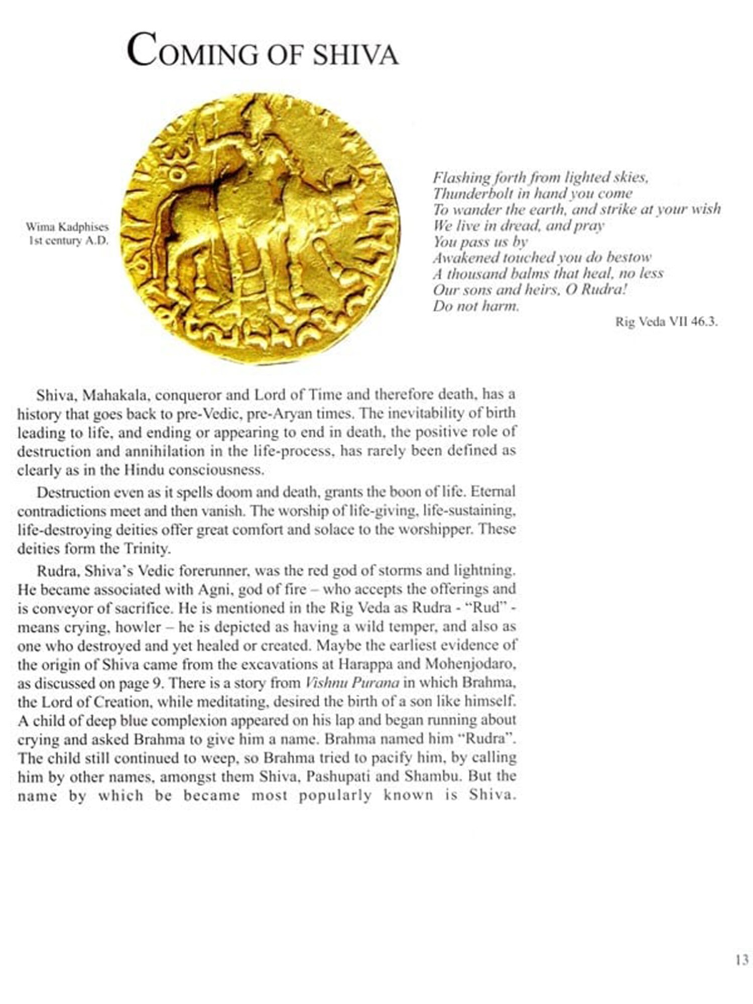 Shiva is an integral aspect of the functionally intertwined Hindu Trinity which creates, preserves, destroys, transforms, recreates and renews. The author shows how the Vedic hymns refer to Shiva as Rudra, the dreaded destroyer wandering with a thunderbolt in hand and as a bestower of a thousand balms that heal.