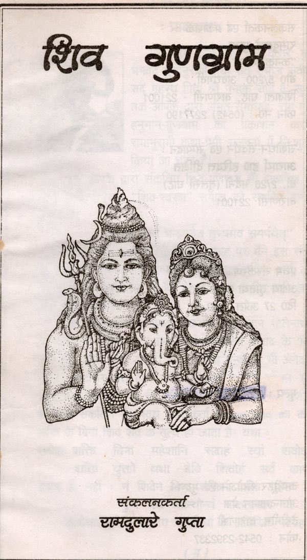 मेरे परम मित्र श्री राम दुलारे गुप्ता, अपने भगवद् गुणानुरागी तथा सत् समाज सेवी, धर्मनिष्ट, सद् गृहस्थ पिता श्री नन्हकू साव के सुपुत्र हैं। अब तक आपके द्वारा अमृत रामायण राम गुण ग्राम एवं हनुमान गुणग्राम का प्रकाशन कराकर श्री-रामानुरागी कथा प्रेमी सज्जनों में निःशुल्क वितरित किया जा चुका है। पुनः आपके द्वारा संकलित शिव-गुणग्राम भी प्रकाशित होकर आप सभी साहित्यानुरागी "शिव स्वरूप समाज को समर्पित करने के लिये प्रस्तुत है। "त्वदीयं वस्तु भगवन्देव तुभ्यमेव समर्पयेत्" मित्रवर श्री गुप्ता जी के विशेष आग्रह पर मैंने इस संकलित ग्रन्थ के संशोधन संवर्धन एवं सम्पादन जैसे दुरुह कठिन कार्य की स्वीकृति मात्र इसीलिये प्रदान कर दी कि मेरे द्वारा भी समाज रूपी जगदीश्वर की सेवा बन जायेगी। इस शिव-गुणग्राम नामक संकलन में भगवान भोलेनाथ भूतभावन के चरित से सम्बन्धित "मानस" से उमा-शिव संवाद के अतिरिक्त भी कुछ अंश उधृत किये गए हैं। अन्य विविध ग्रन्थों से भी अनेकों स्तुतियाँ, स्तोत्र, अष्टोत्तर शत शिव नाम शिव ताण्डवस्तोत्र महिम्न स्तोत्र, आदि प्रचुर सामग्रियों के साथ ही नव दुर्गा के स्वरूप आदि का वर्णन भी स्तोत्र के साथ संकलित है। स्वयं संहारकर्ता भगवान शिव का कथन है कि शक्ति के बिना शिव शव के तुल्य हो जाता है