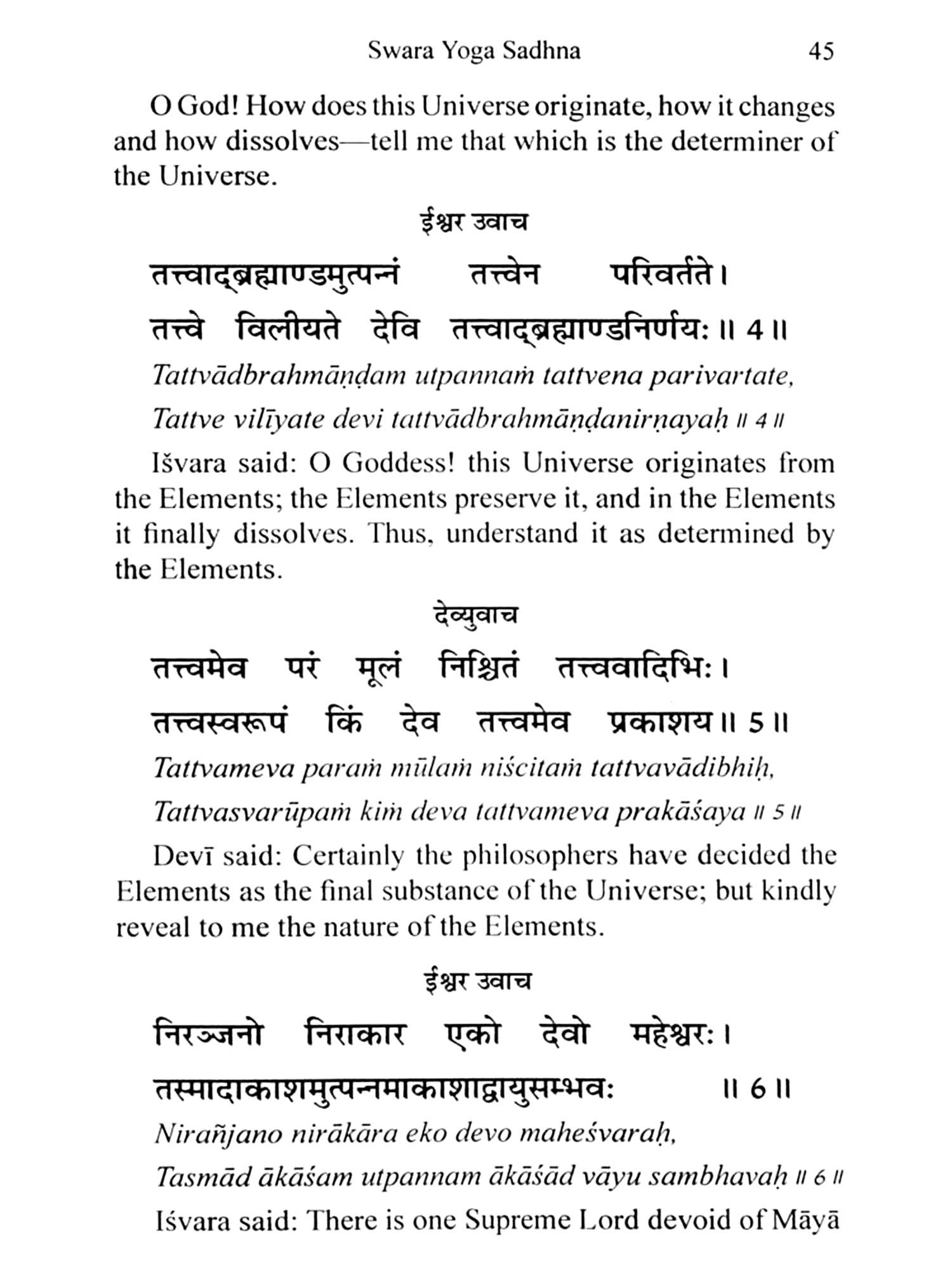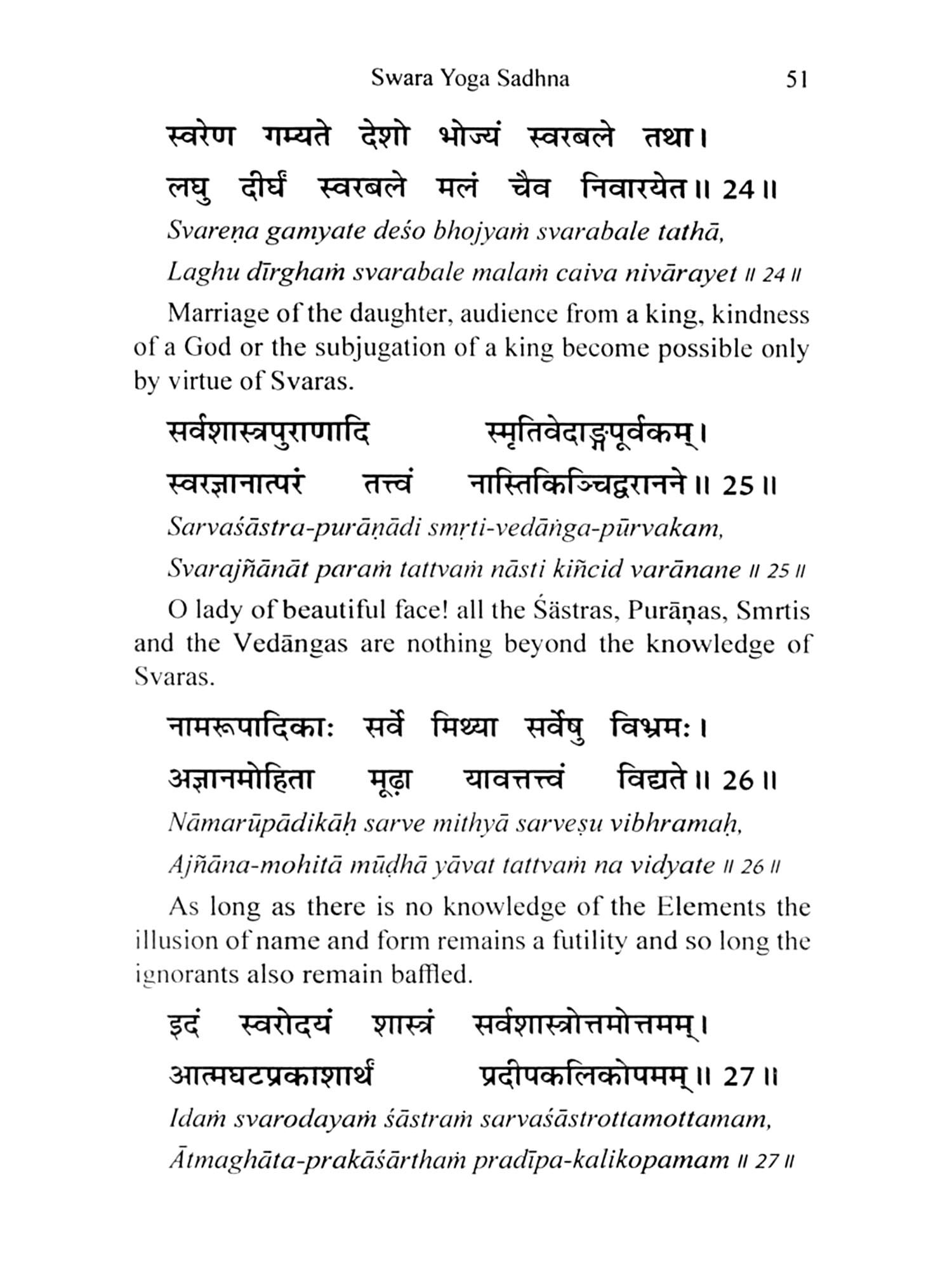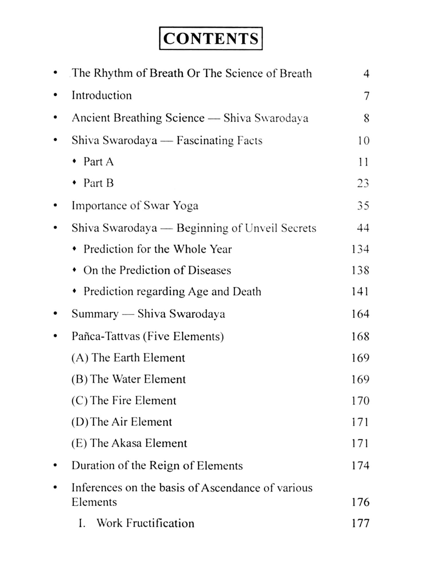 Shiva Swarodaya, herein presented with an English Translation together with Roman version of the Sanskrit text. This is the only one authentic extant which define the Science of predicting auspicious and inauspicious results based on the flow of breathing through one or the other nostril. Lord Shiva revealed this secred to his divine consort Parvati with specific instructions to keep it a closely guarded, revealed only to those who deserved.