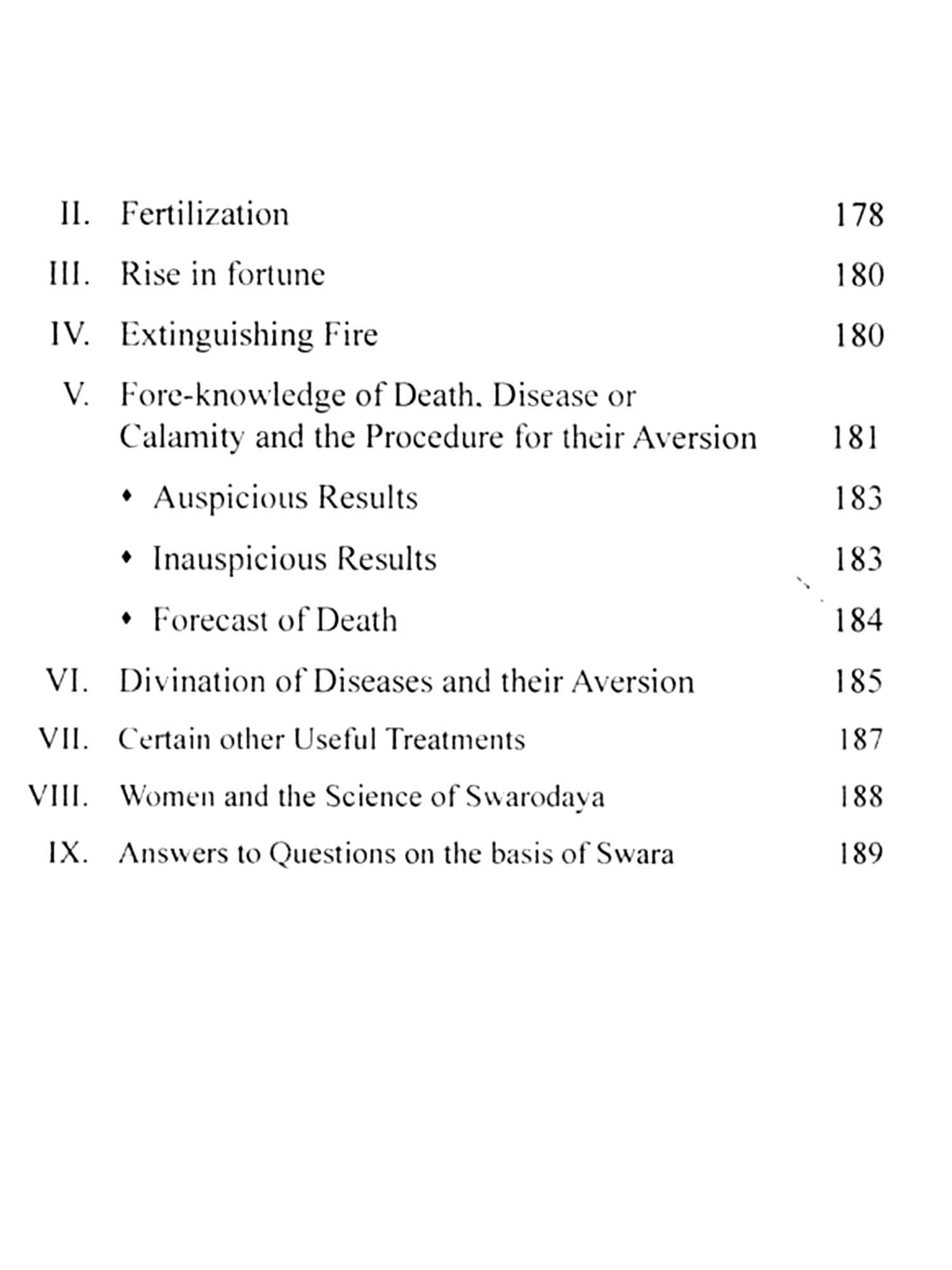 However, its importance and utility would atonce become evident to anyone as soon as he starts actions specified in it. Often the result start showing even within a week of its adoption. If one considers all the facts of this Science, such as, the breathing nostril, reigning element, the planetary combinations and the signs of the zodiac, he can make scrupulously precise predictions about the success or failure in any walk of life and for any purpose, both for one's own self and for others.