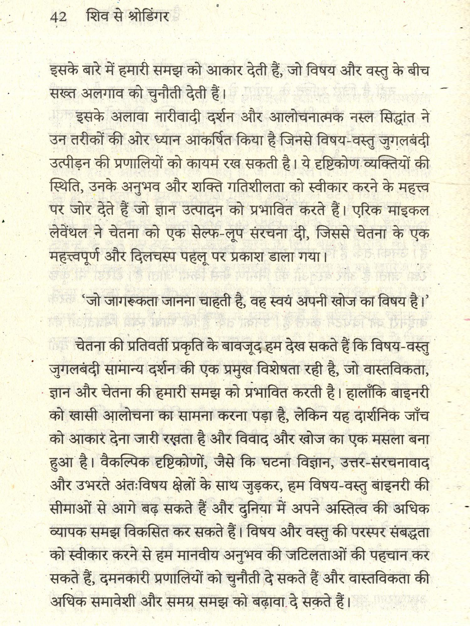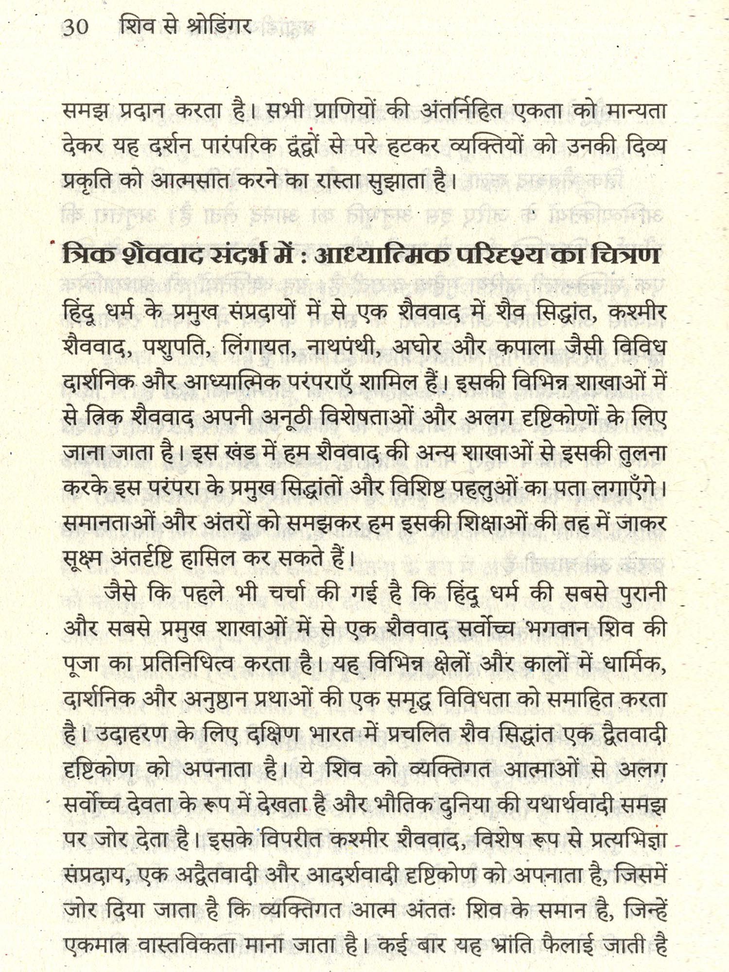 मानव इतिहास के सबसे मौलिक प्रश्न हम कौन हैं? यह ब्रह्मांड किस प्रकार कार्य करता है? हमारी चेतना का स्थान और भूमिका क्या है? -युगों से हमारे विचार और अनुसंधान को प्रेरित करते रहे हैं। वास्तविकता का स्वभाव, अपनी गहनतम परतों में, अंतर्संबद्ध से परिपूर्ण प्रतीत होता है - जहाँ घटनाएँ, वस्तुएँ और अवस्थाएँ केवल अपने-अपने अलग अस्तित्व में नहीं, बल्कि संबंधों और पारस्परिक प्रभावों में अर्थ पाती हैं। इस अंतर्संबद्धता का एक स्वाभाविक गुण है उसका अविनिमेय स्वभाव : चीजें अकसर ऐसे रूप में गुँथी होती हैं कि क्रम बदलने पर सार का ताना-बाना एक प्रकार नहीं बना रहता है। इसी संरचना में सहसंबद्ध रचनात्मकता भी निहित है वास्तविकता के विभिन्न पहलू, चाहे वे भौतिक हों या बौद्धिक, एक-दूसरे के साथ नए अर्थ और संभावनाएँ गढ़ते हैं। यह सृजन केवल मनुष्यों का कार्य नहीं, बल्कि प्रकृति के गतिशील संतुलन का एक मौलिक गुण है। और इन सबके भीतर मौजूद है अनिश्चितता केवल क्वांटम भौतिकी की विशेषता नहीं, बल्कि अस्तित्व की गहरी लय का एक अंग है। अनिश्चितता हमें यह याद दिलाती है कि पूर्ण पूर्वानुमान से परे भी एक ऐसा क्षेत्र है, जहाँ संभावनाएँ और संभाव्य संरचनाएँ वास्तविकता का हिस्सा हैं। जो शिव से श्रोडिंगर इसी बहुस्तरीय और गतिशील वास्तविकता को समझने के लिए विज्ञान और दर्शन, दोनों की अंतर्दृष्टियों को साथ रखकर एक संवाद स्थापित करने का प्रयास है। यह पुस्तक इन परंपराओं को न तो एक-दूसरे में समाहित करती है, न उन्हें प्रतिस्पर्धी मानती है, बल्कि उन्हें उस व्यापक बौद्धिक परिदृश्य का हिस्सा समझती है जिसमें वास्तविकता के गुण स्वयं प्रकट होते हैं। मेरा निवेदन है कि आप इस पुस्तक को उत्तर पाने की अपेक्षा से नहीं, बल्कि इन गुणों की खोज और अनुभव की यात्रा के रूप में पढ़ें। यदि यह संवाद आपके भीतर नए प्रश्न और दृष्टि के नए कोण उत्पन्न करे, तो इसका वास्तविक उद्देश्य सिद्ध होगा।