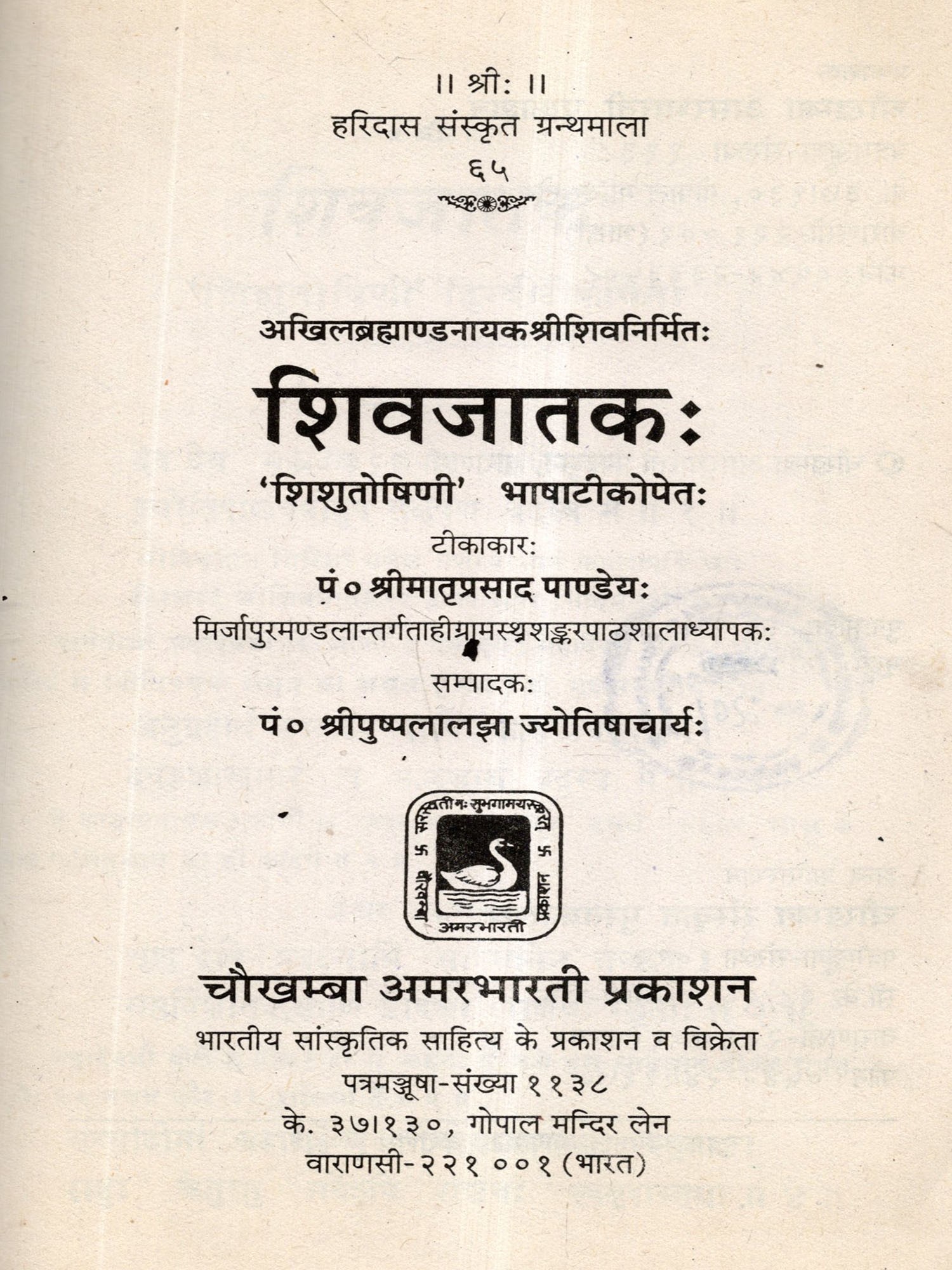 शिवजातकः 'शिशुतोषिणी भाषाटीकोपेतः: Shivajataka with Shishutoshini Commentary (An Old and Rare Book) Astrology Book