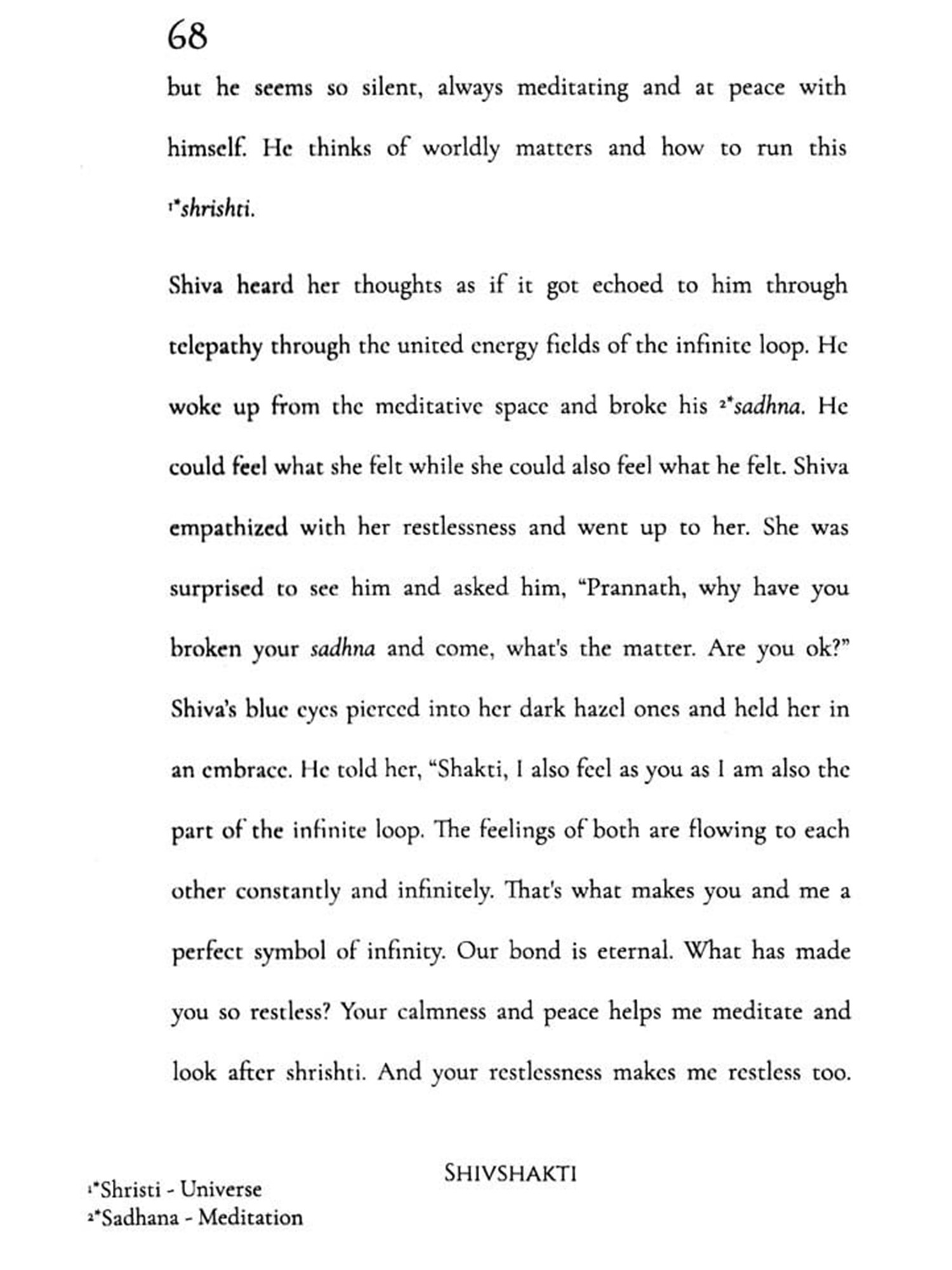 The book "Shivashakti - The continuous continuum" is based on the Divine principle of Divine masculine and Divine Feminine also known as Shivshakti. This book is a channeled text on how the principle of Shivshakti exists in everything we can see, feel and experience. It is on a continuous continuum to higher dimensions. Its continuously evolving to experience itself deeper. It conceived with the ideology to spread the wisdom of the universe across and is inspired by Mother God and Father God.