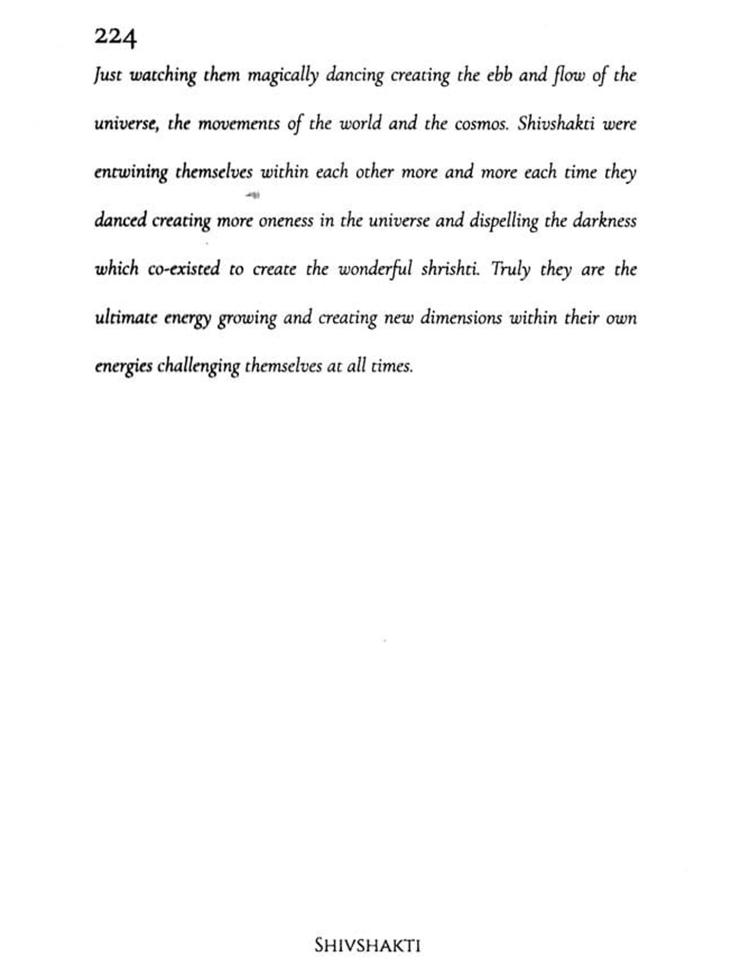 This book came unexpectedly to me while I was working on two others, which still await completion. It suddenly began to dance in front of my eyes. I began to see images of Lord Shiva and Goddess Shakti and words to match the images just poured into my head. Beginning as one article that I posted on my WhatsApp groups and Facebook page, the overwhelming appreciation I received encouraged me to turn it into a book. And all the while, the words just kept pouring into my head, unbidden, unsought, and unconscious. Somehow I managed to scribble it all down as fast as it arrived. It's a completely channelled work and thus completely original with no reference to any other text or religious book. Shivhakti The Continuous Continuum is not a religious discourse.