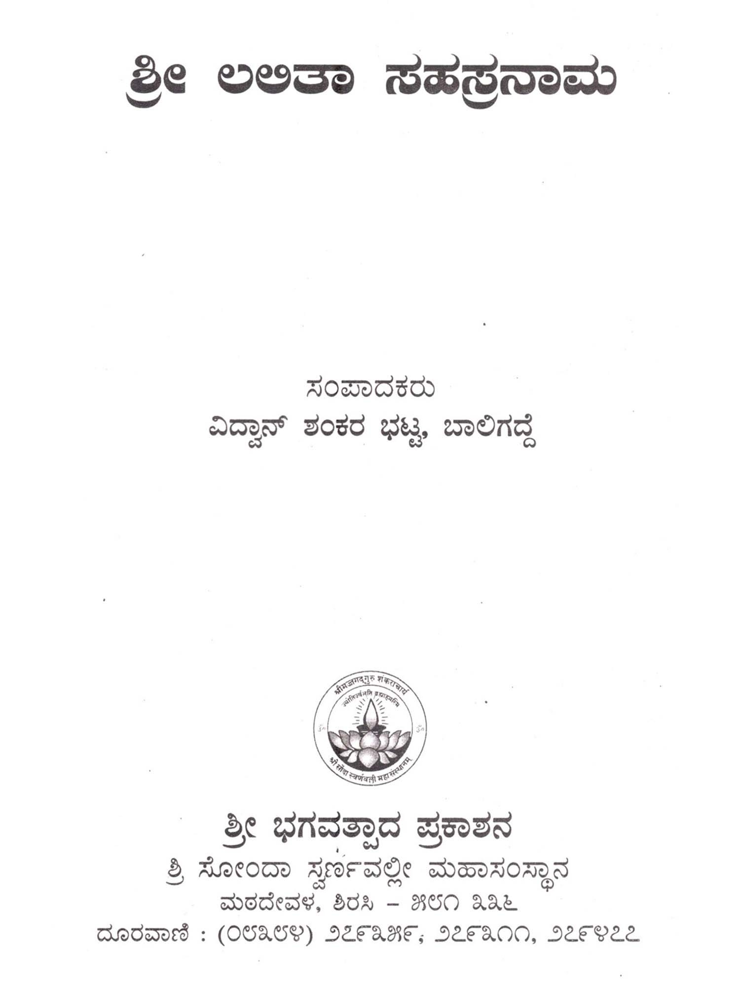 ಶ್ರೀ ಲಲಿತಾ ಸಹಸ್ರನಾಮ: Sri Lalitha Sahasranama (Kannada)