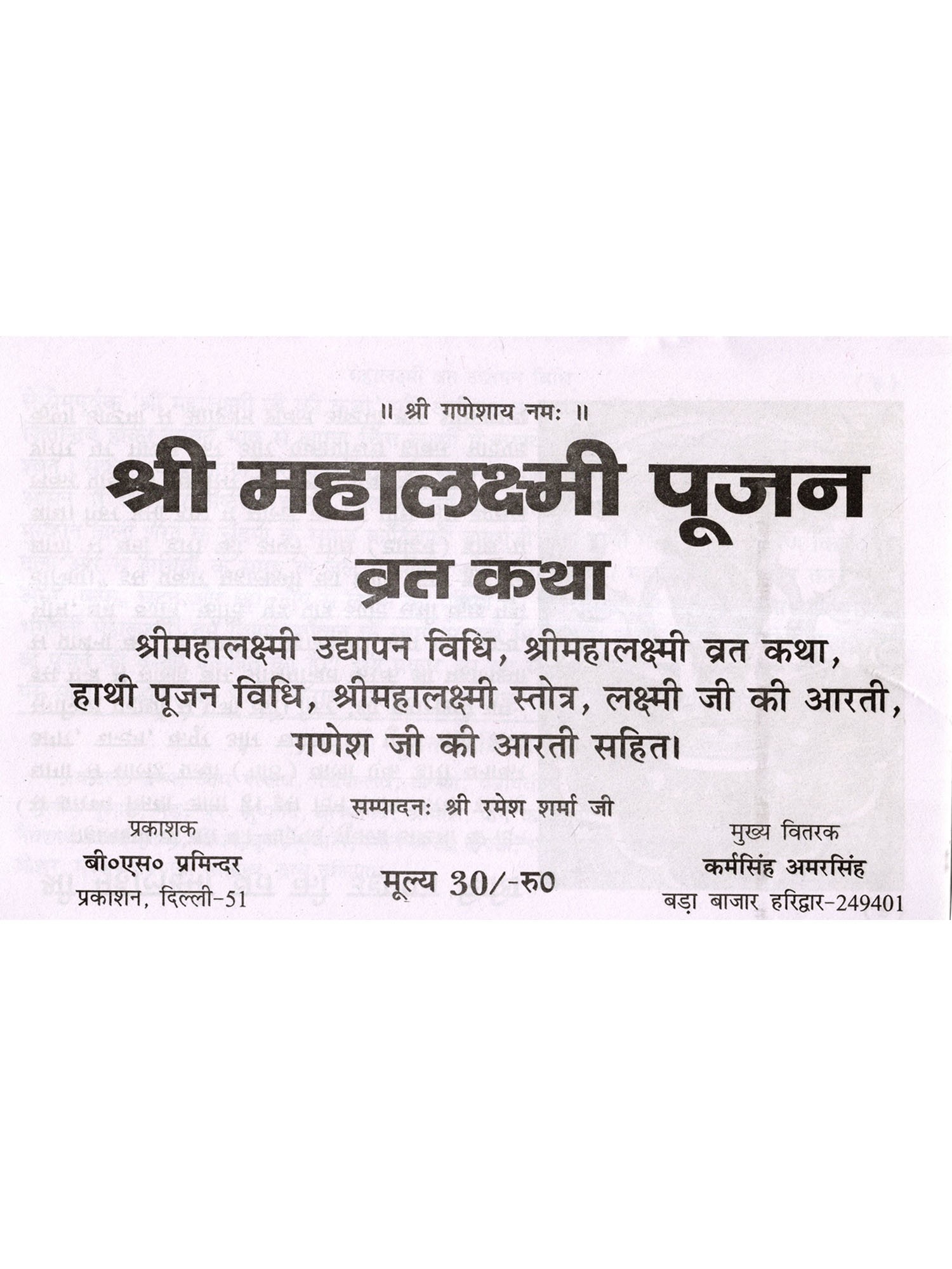 श्री महालक्ष्मी व्रत कथा: Shree Mahalaxmi Vrat Katha (Including Udyapan Method, Elephant Worship Method, Mahalakshmi Stotra and Aarti)