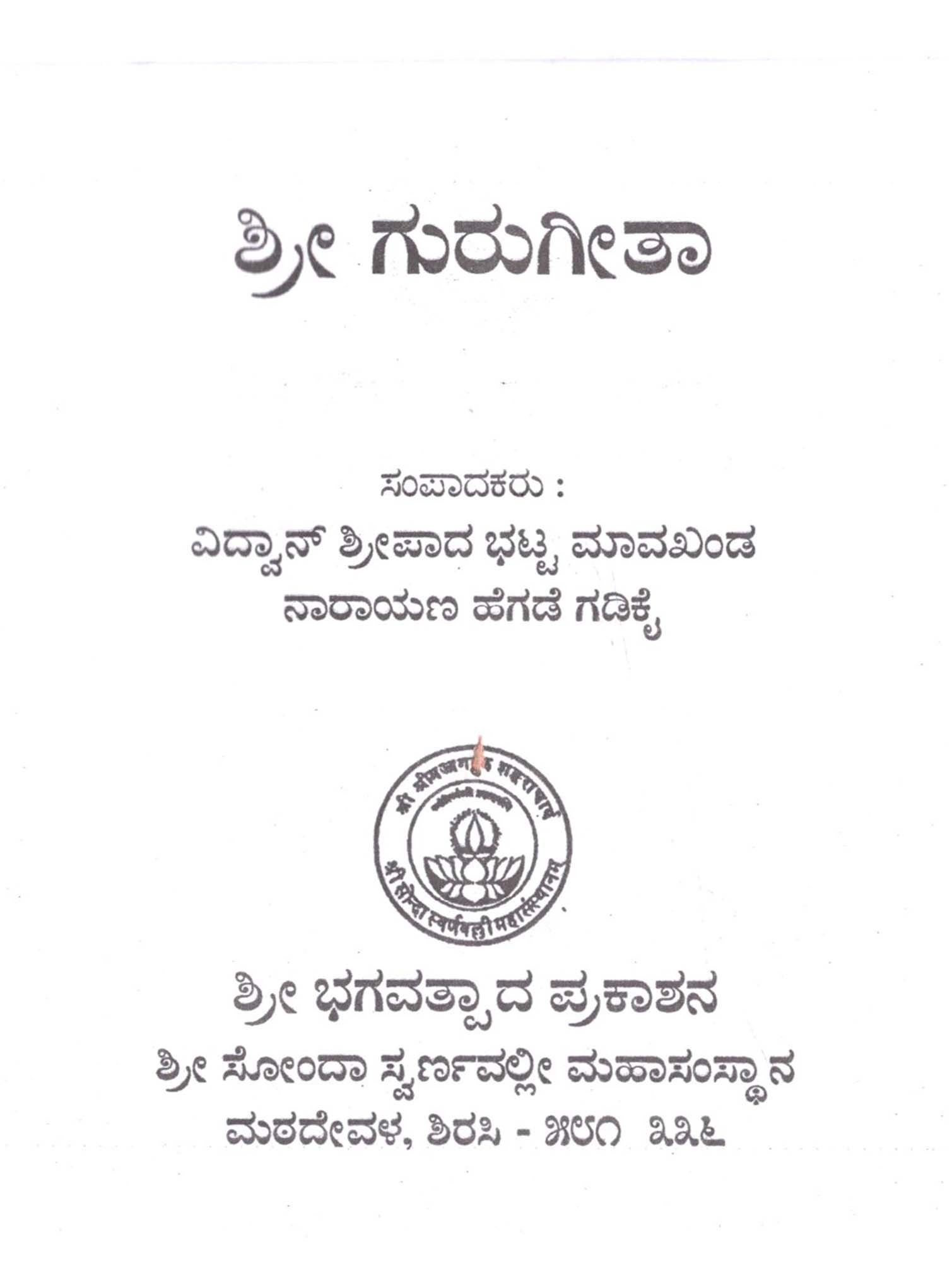 గురు గిల తా: ಕನ್ನಡ ಅನುವಾದ ಸಹಿತ- Guru Gita in Kannada
