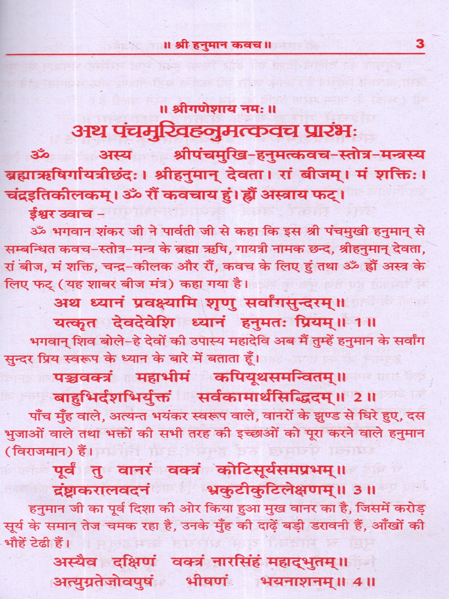 श्री हनुमान कवच: Shri Hanuman Kavach (Includes 108 Names of One-faced and Five-faced Shri Hanuman, along with the Aarti of the Ramayana)