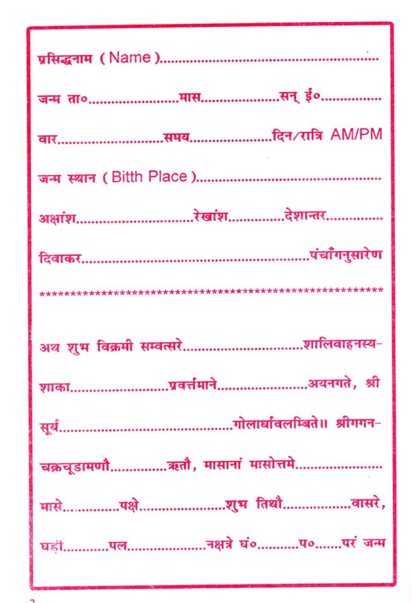 श्री जन्म पत्रिका- Shri Janam Patrika