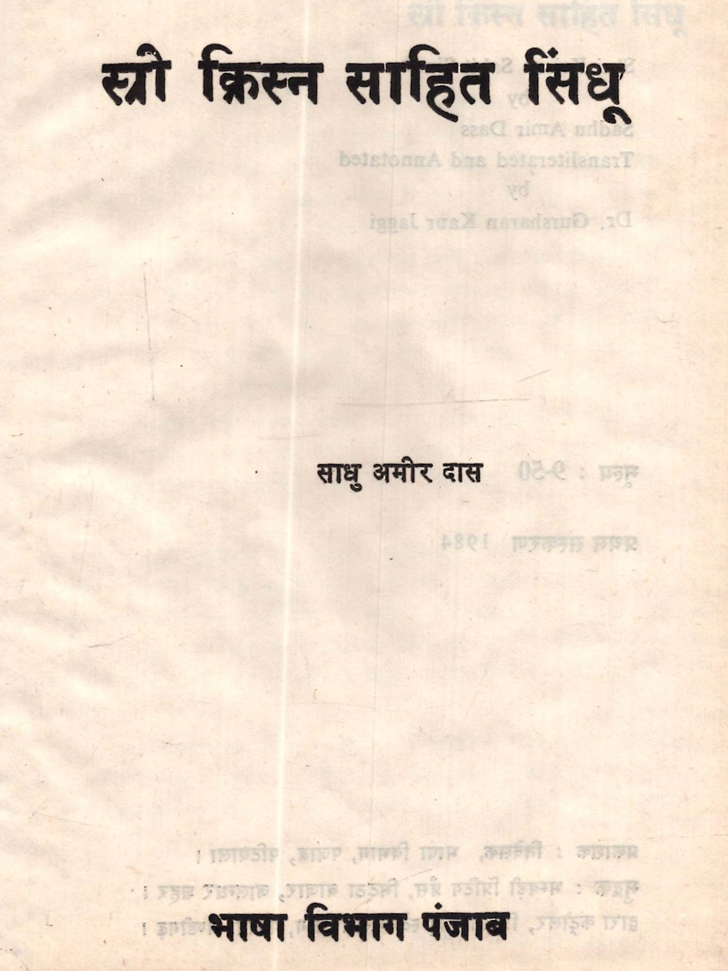 श्री क्रिस्न साहित सिंधू: Shri Krishan Sahit Sindhu (An Old and Rare Book)
