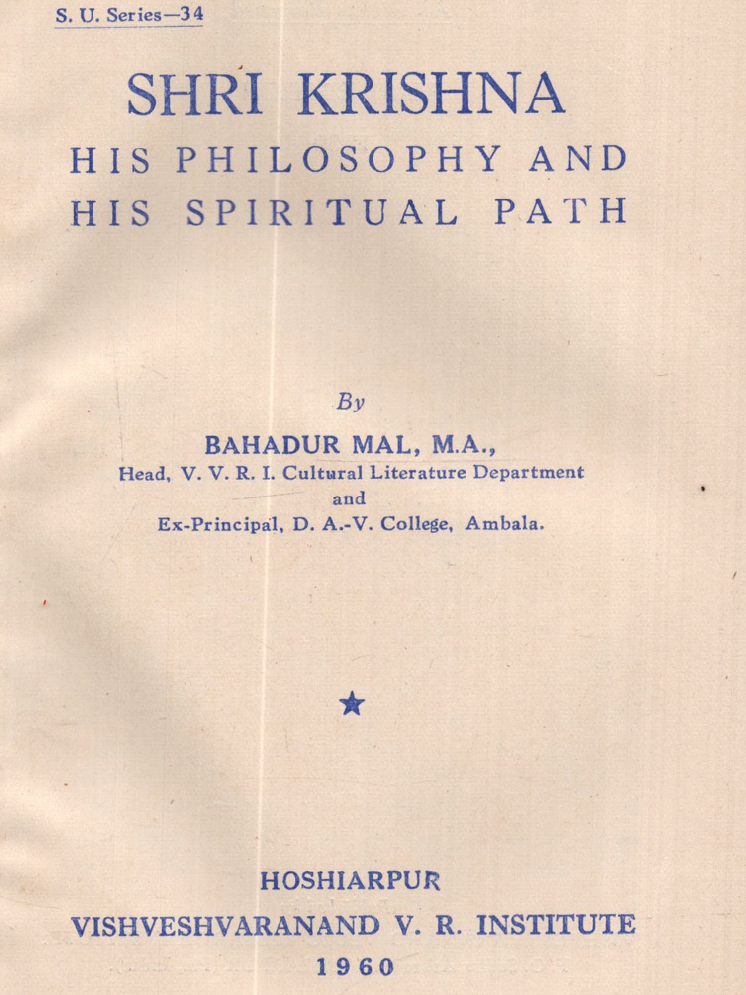 Shri Krishna: His Philosophy and His Spiritual Path (An Old and Rare Book)